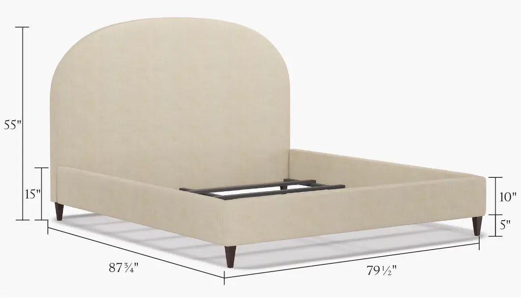 With its modern, curved silhouette and classic frame, our Demilune Bed is a design feature in and of itself. If you prefer a higher bed or additional support, our box spring beds require a standard box spring or foundation. Our platform beds are designed to support your mattress directly on the slats, making a box spring unnecessary. This setup offers a low-profile look and maintains the sleek, modern aesthetic. Customize in 30+ fabrics.