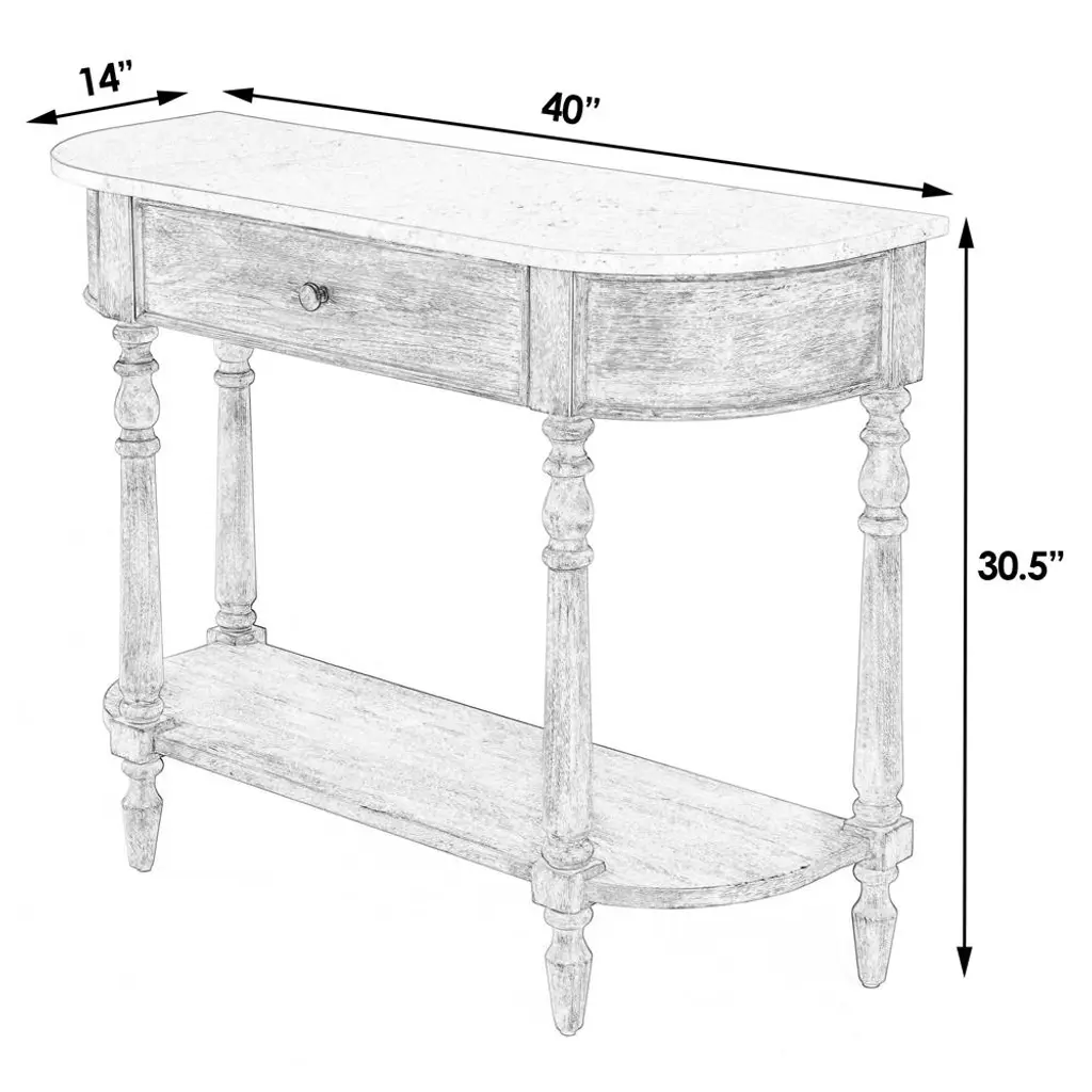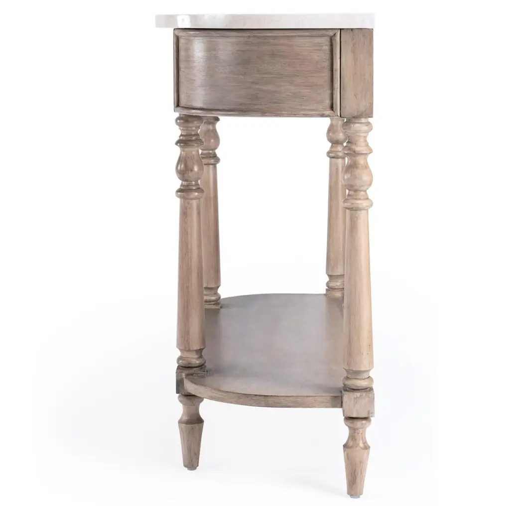 Florentine French Country White Marble Beige Wood Demilune Console Table