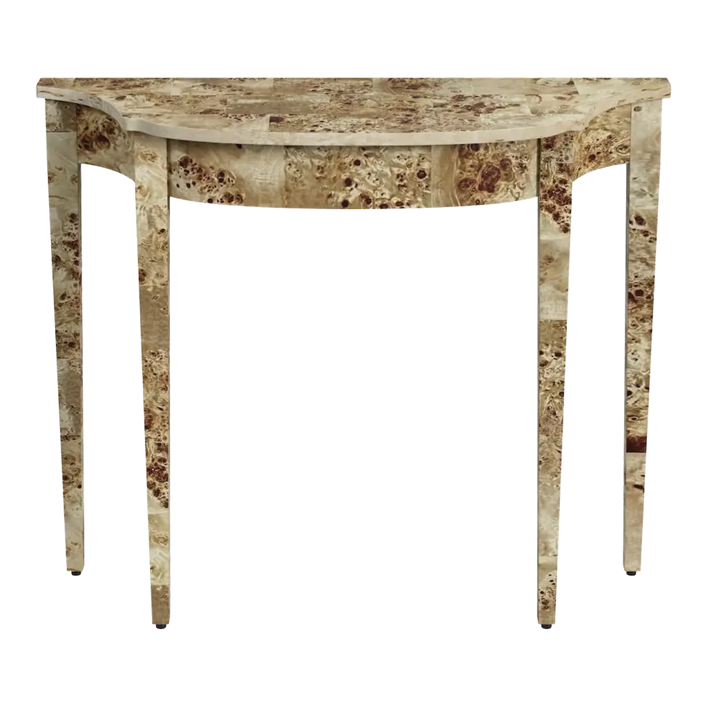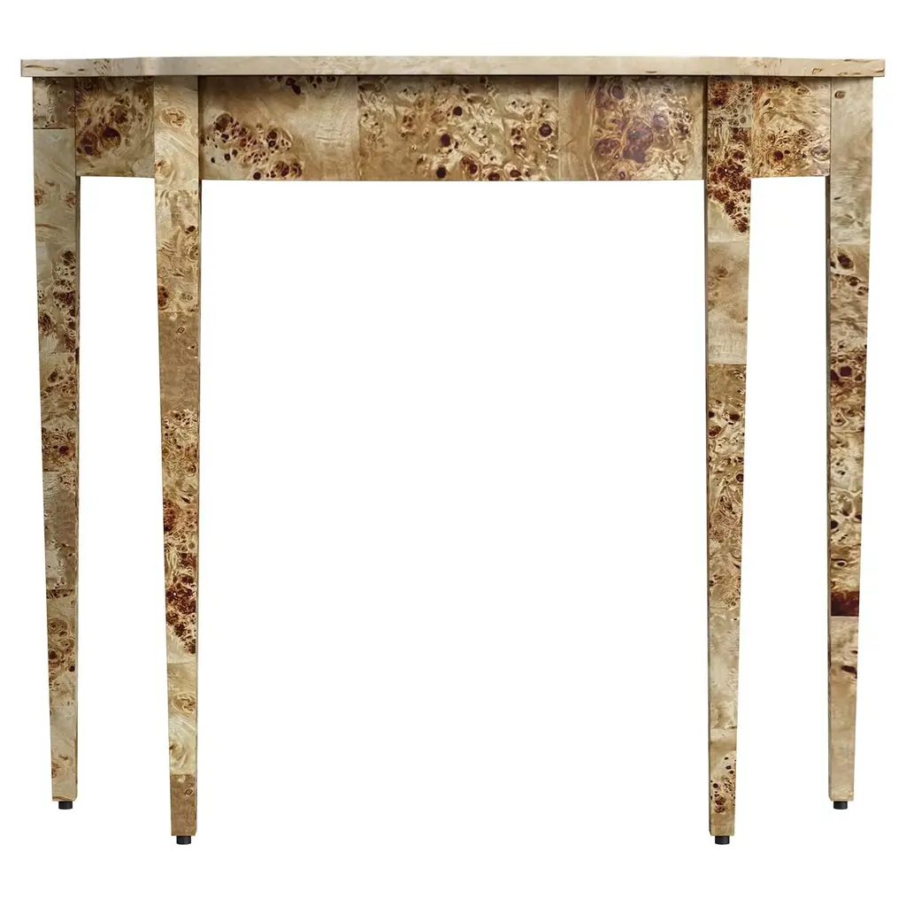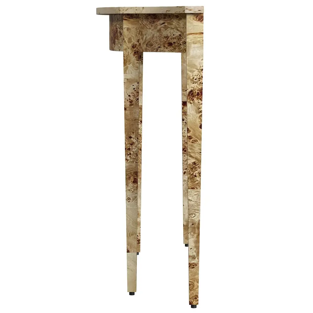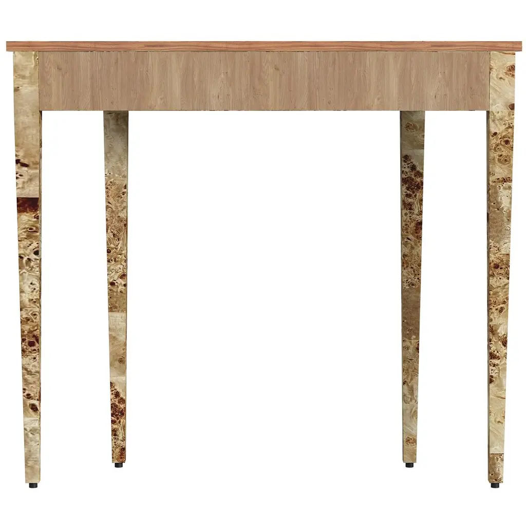 This Pembroke-inspired console is highly elegant, yet unpretentious. Crafted from hardwood solids and wood products, it features beautiful curves with a veneer top. The design includes intricate inlays, enhancing its sophisticated appearance.