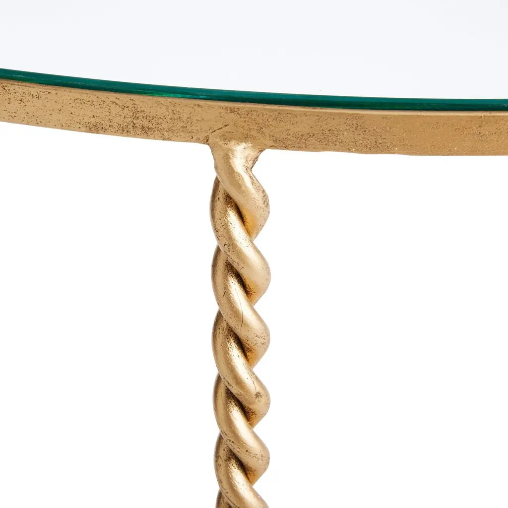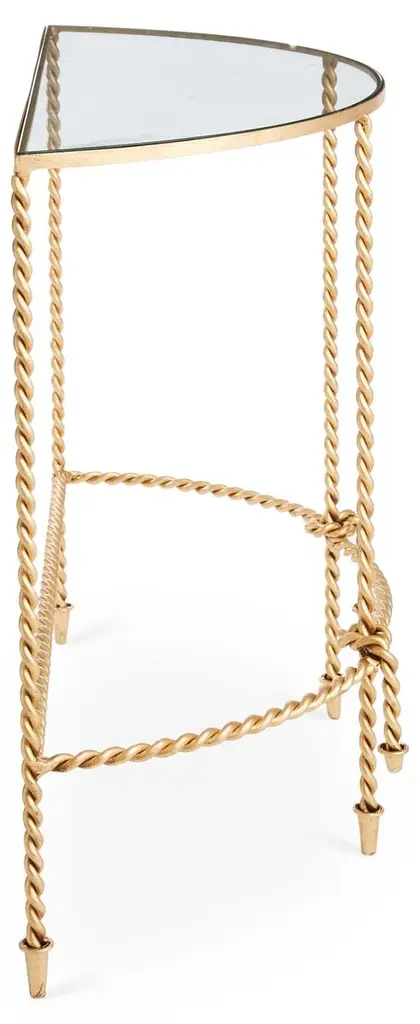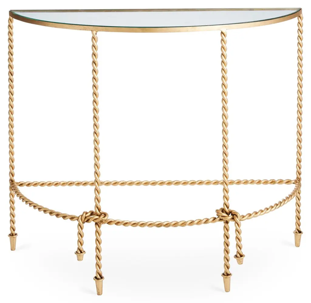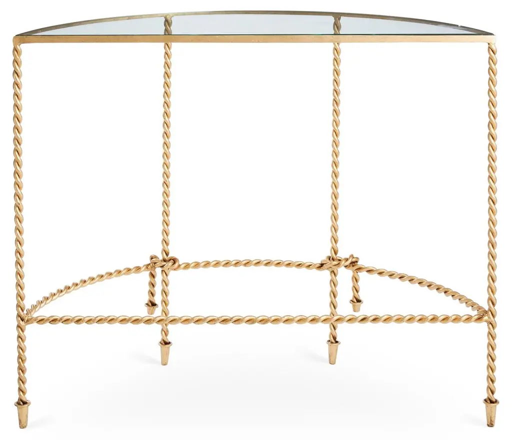 Designed by us and available only at One Kings Lane: Full of refined seaside style, this iron console shows off twisted rope-like framework and a luxe golden finish. Inset with a clear glass top.