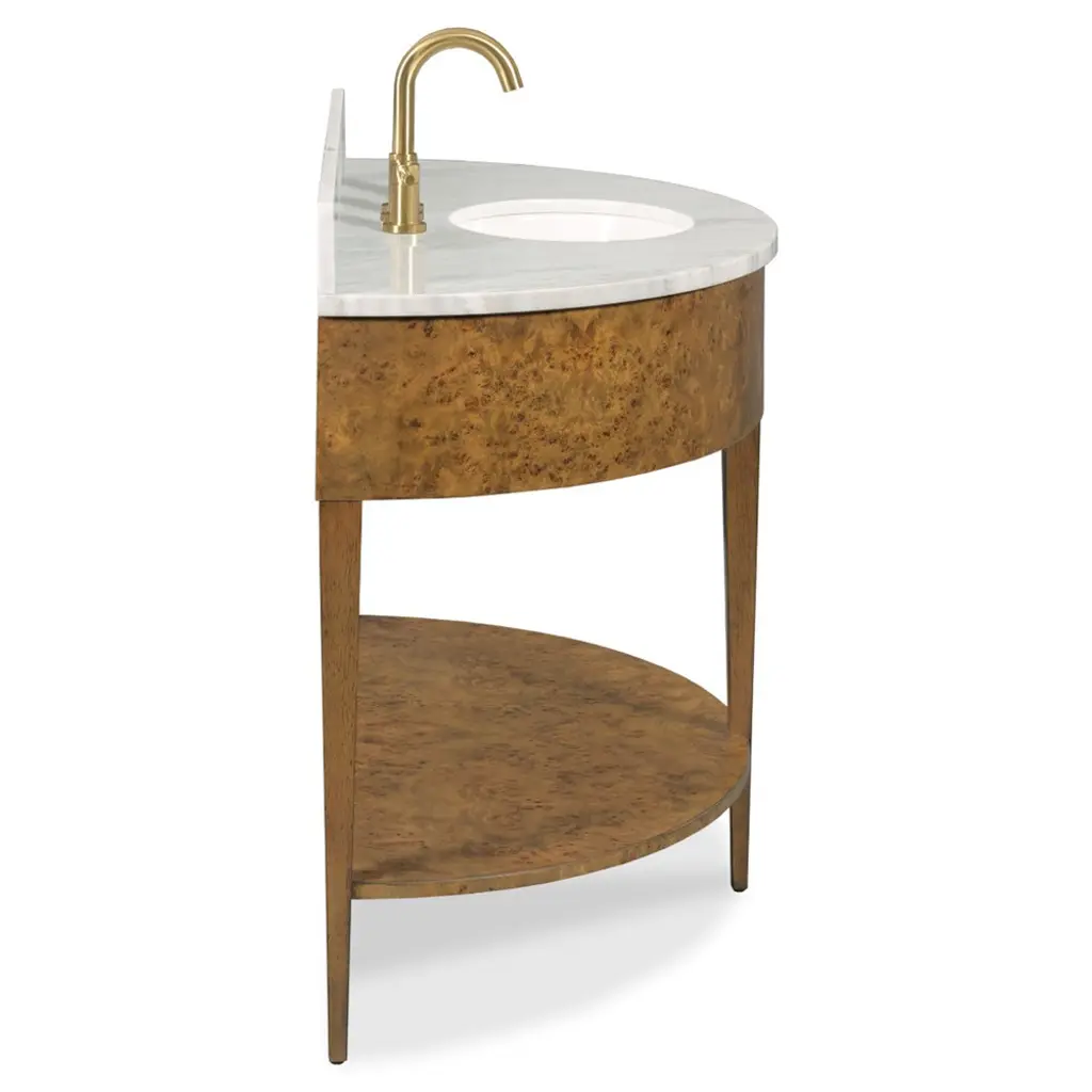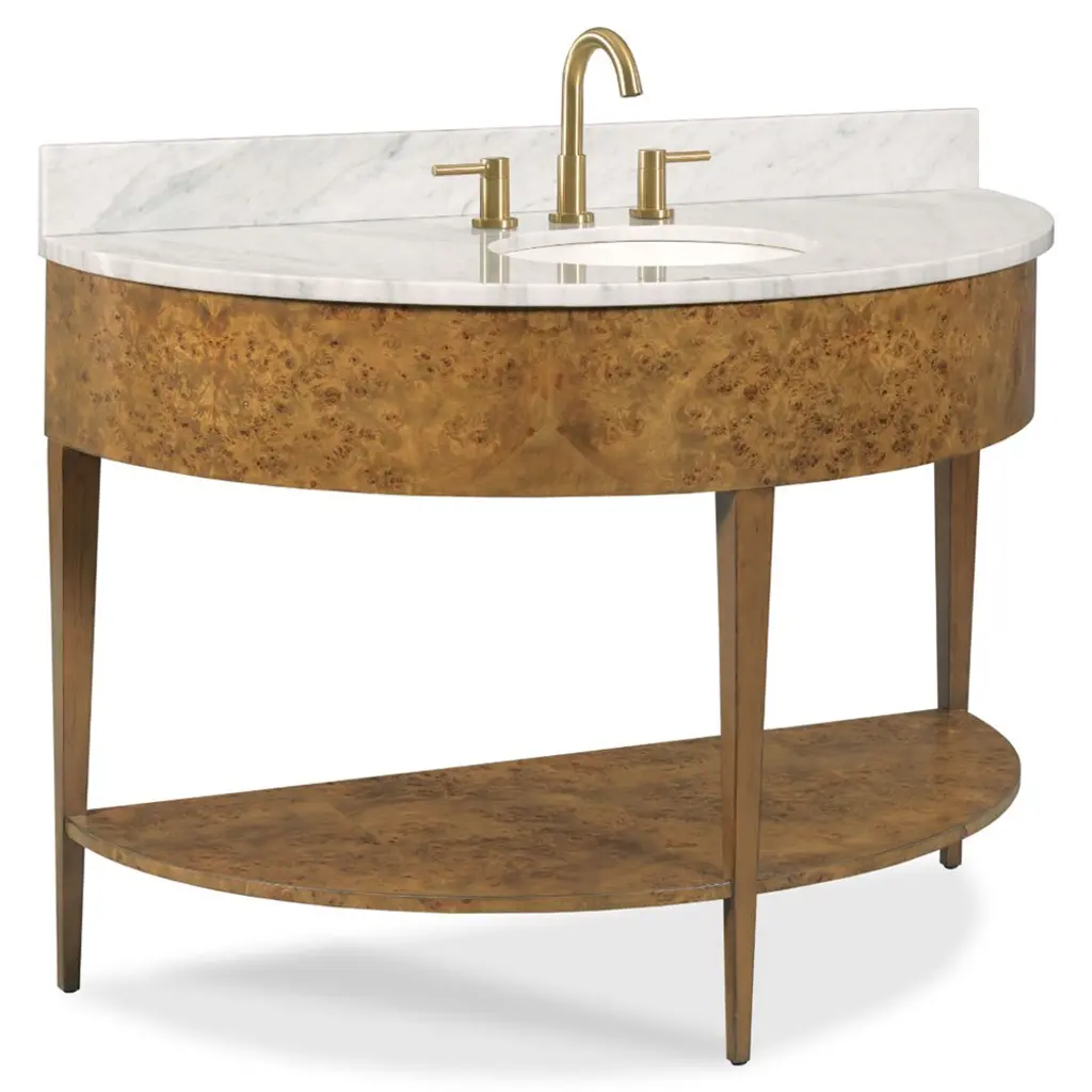 Isla Modern Classic White Marble Brown Burl Demilune Vanity Sink - 47"