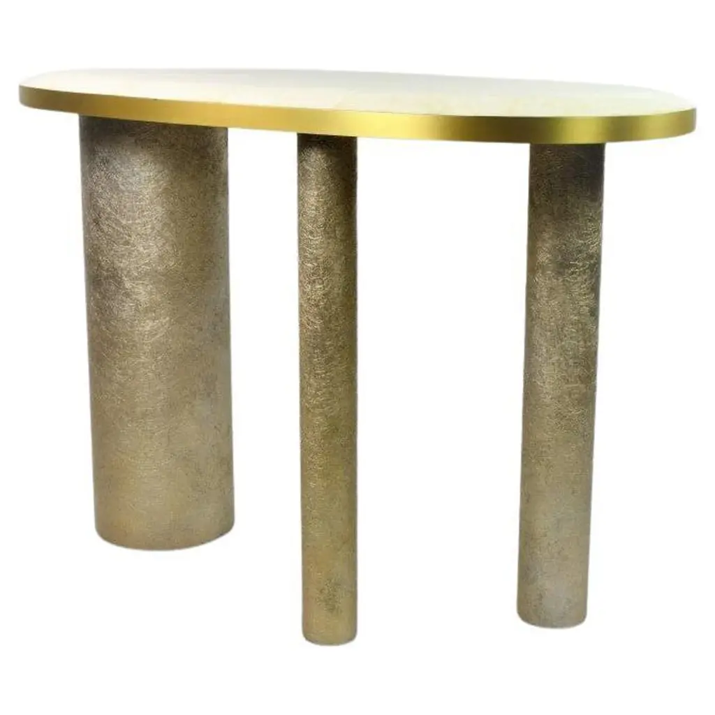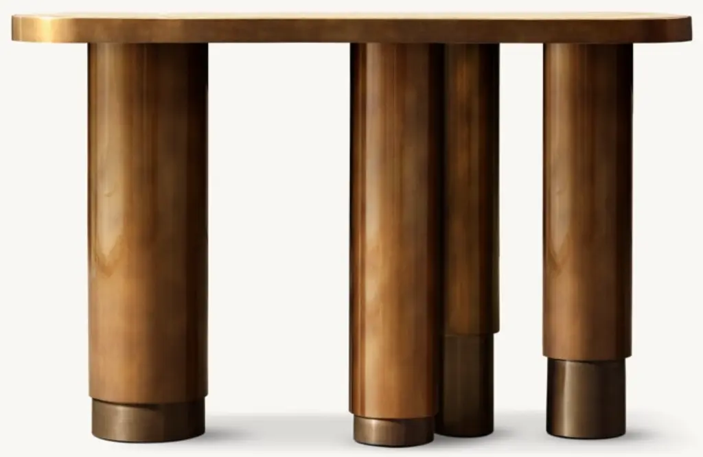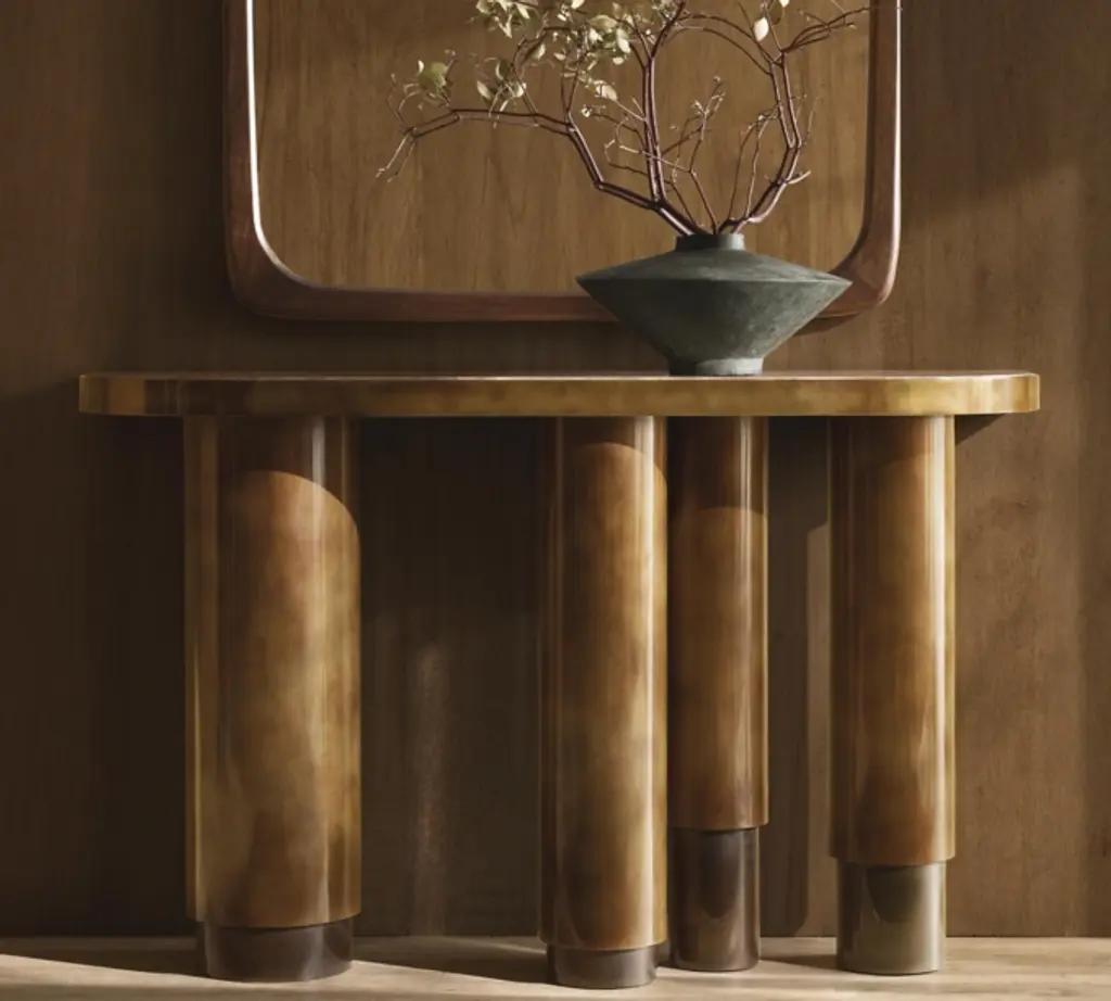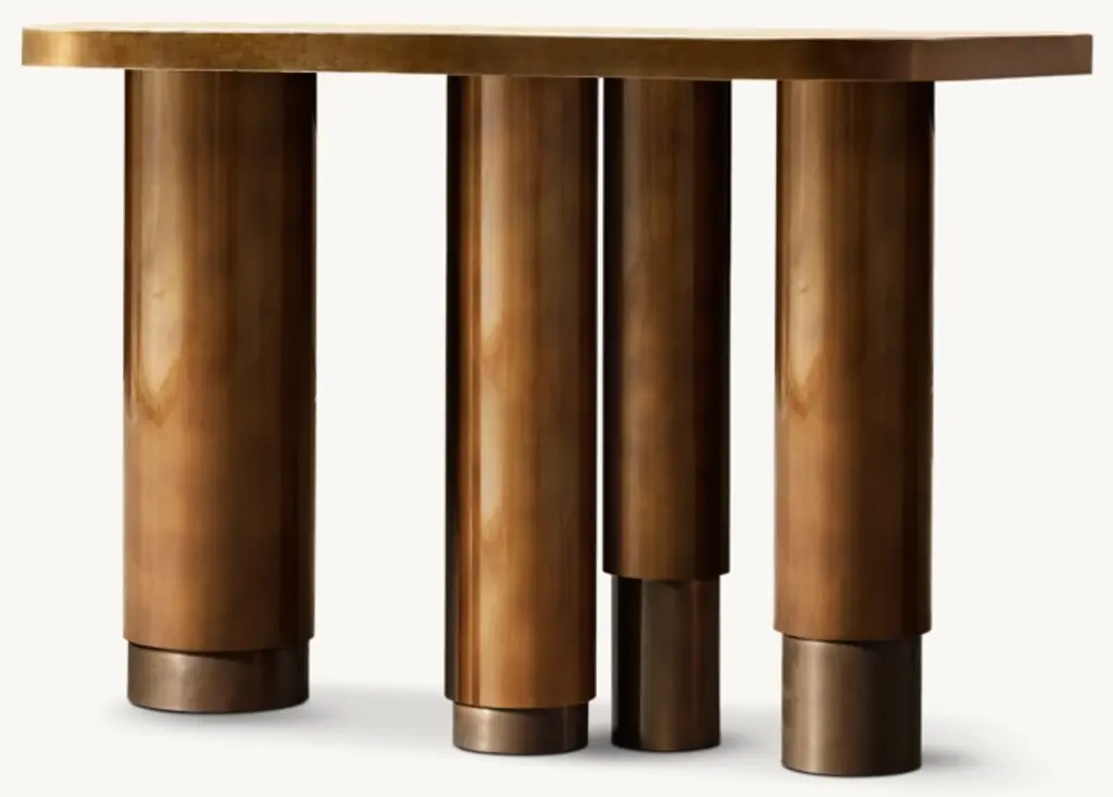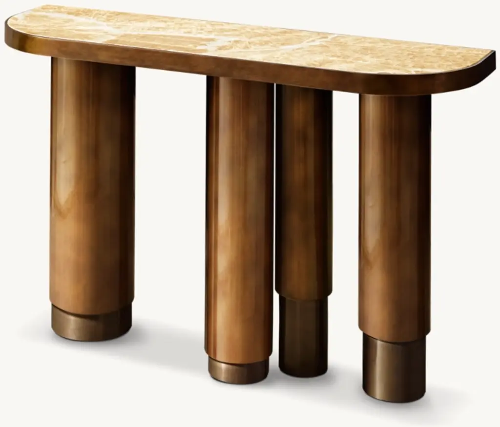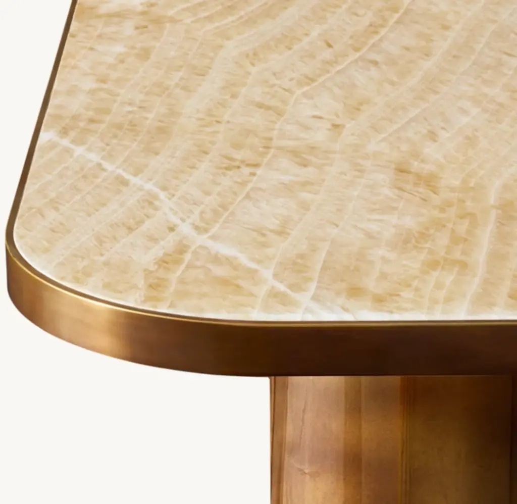 Crafted from rare onyx set in a solid brass frame, Onyx Tropez was inspired by a vintage table discovered in St. Tropez, France. The collection features asymmetric columns, finished by hand for an aged patina, and the distinctive pattern in each stone tabletop ensures every piece is unique.SHOP THE ENTIRE COLLECTION