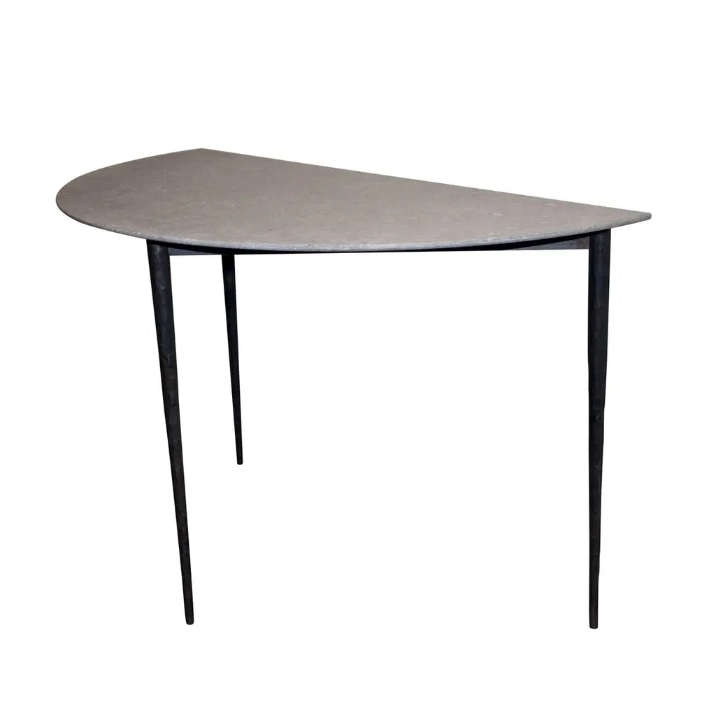 Parker Demilune Console With Bluestone Top And Metal Base