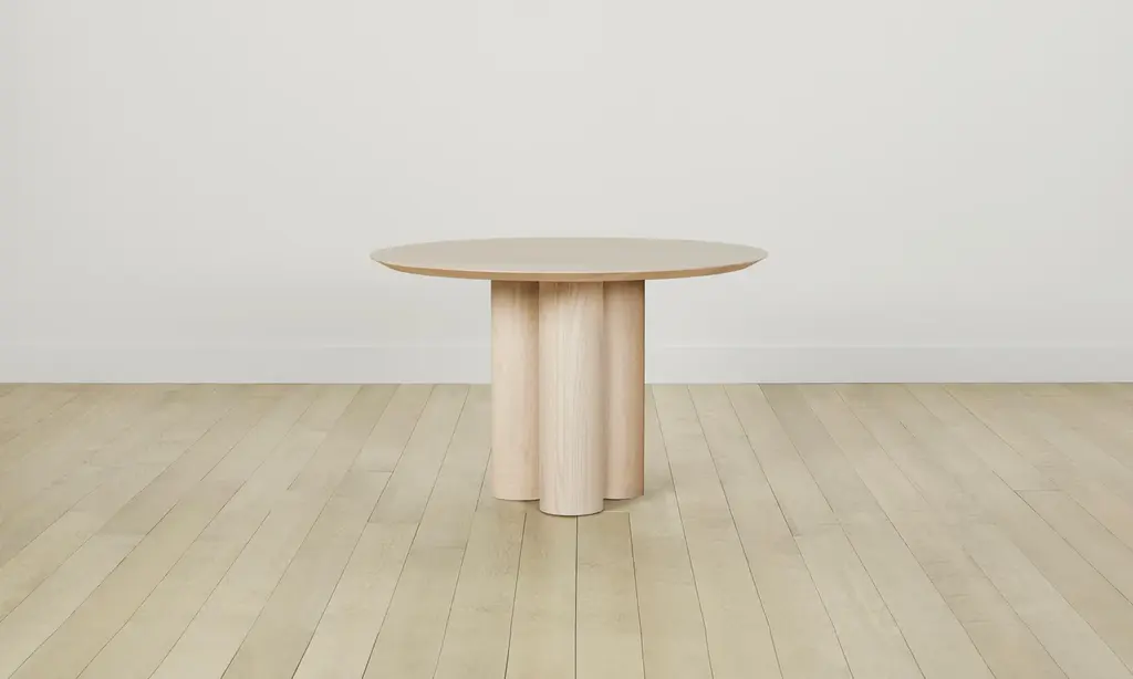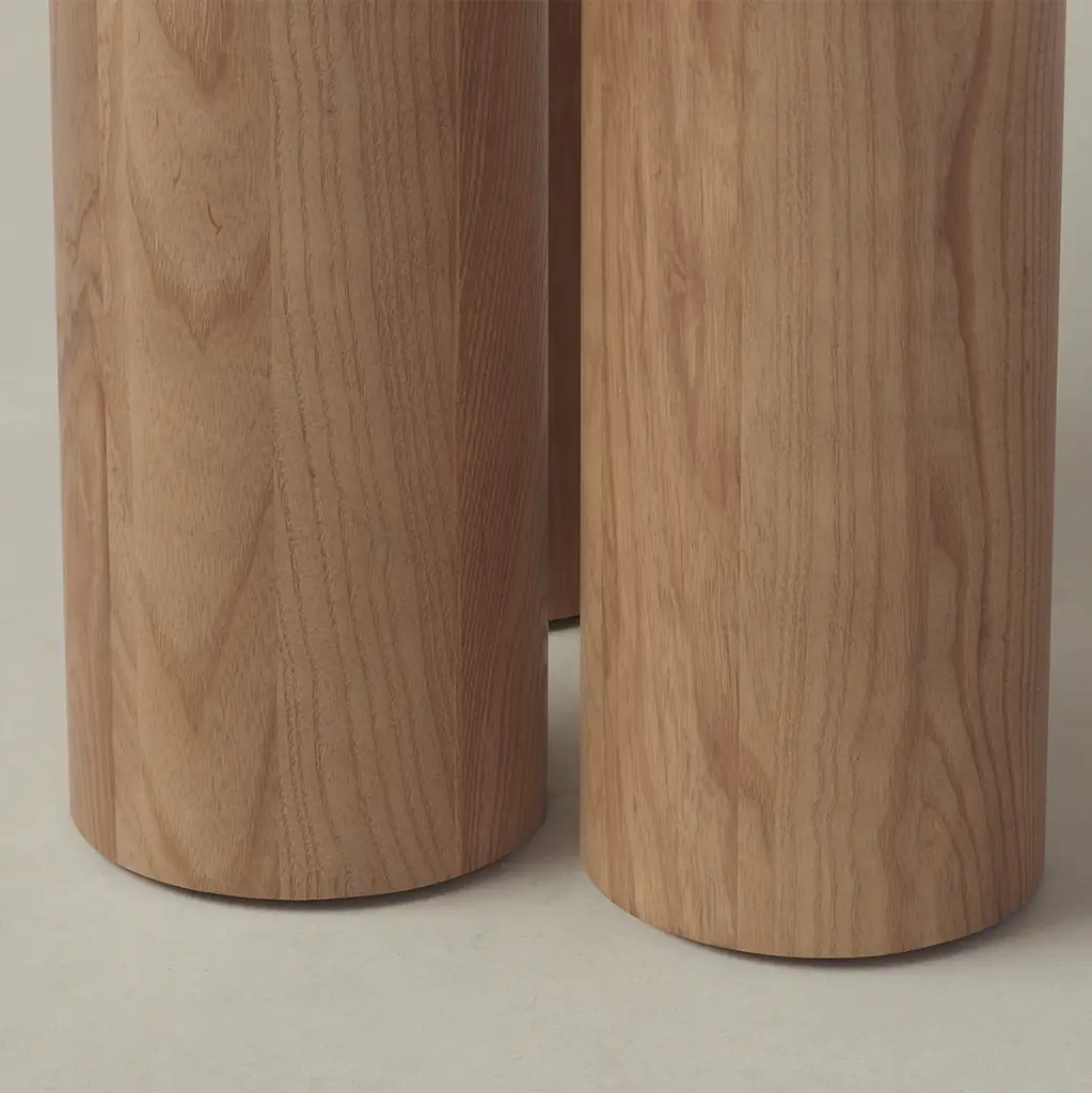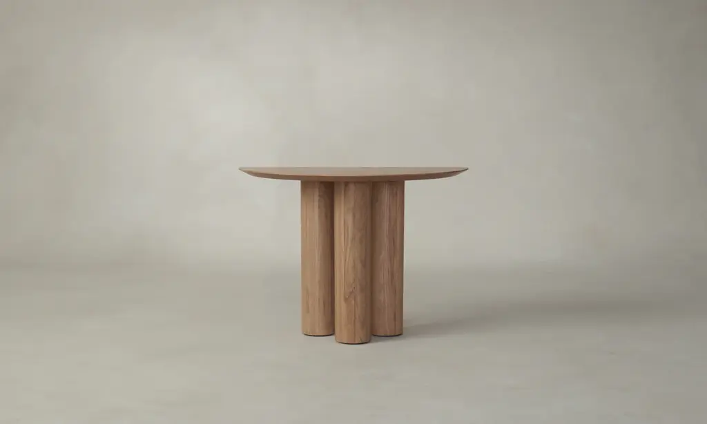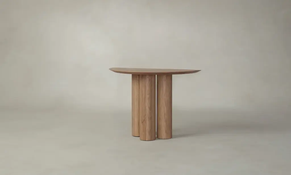 In the Reade Console Table, strong and sculptural forms collide. The design features a demilune tabletop and columnar legs, each shaped from solid ash by Amish artisans. Handcrafted in Ohio.