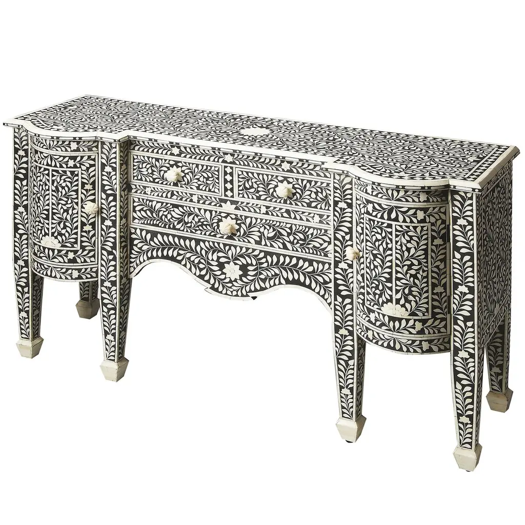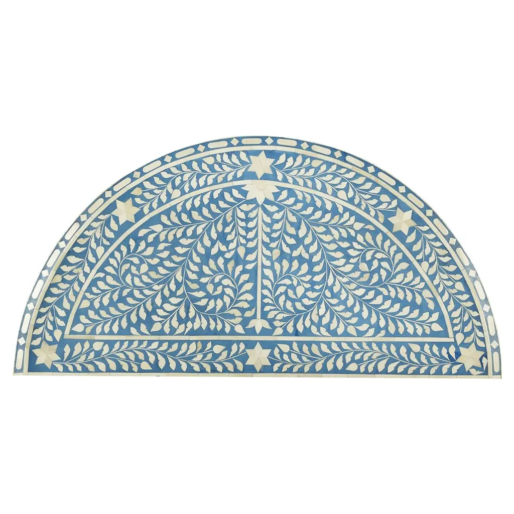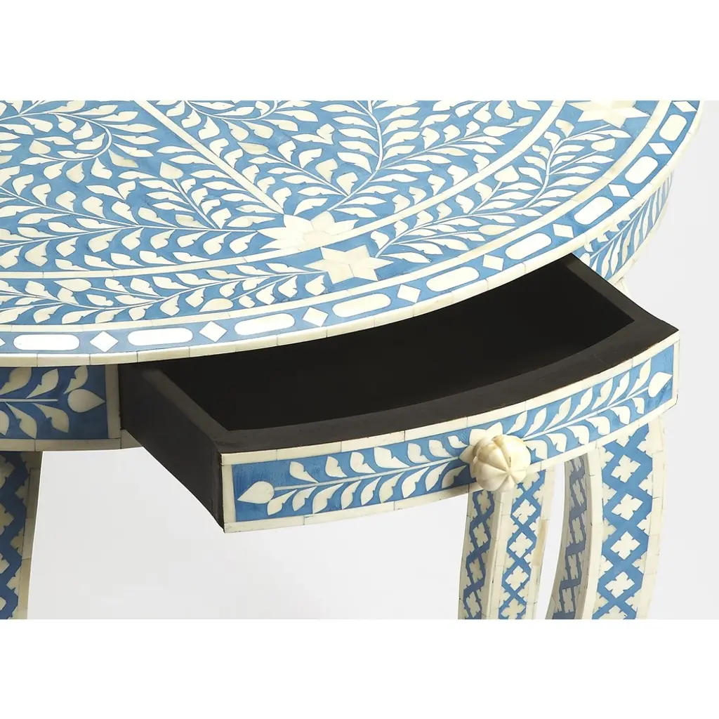 Vivianna Coastal Beach Blue White Bone Inlay Demilune Console Table