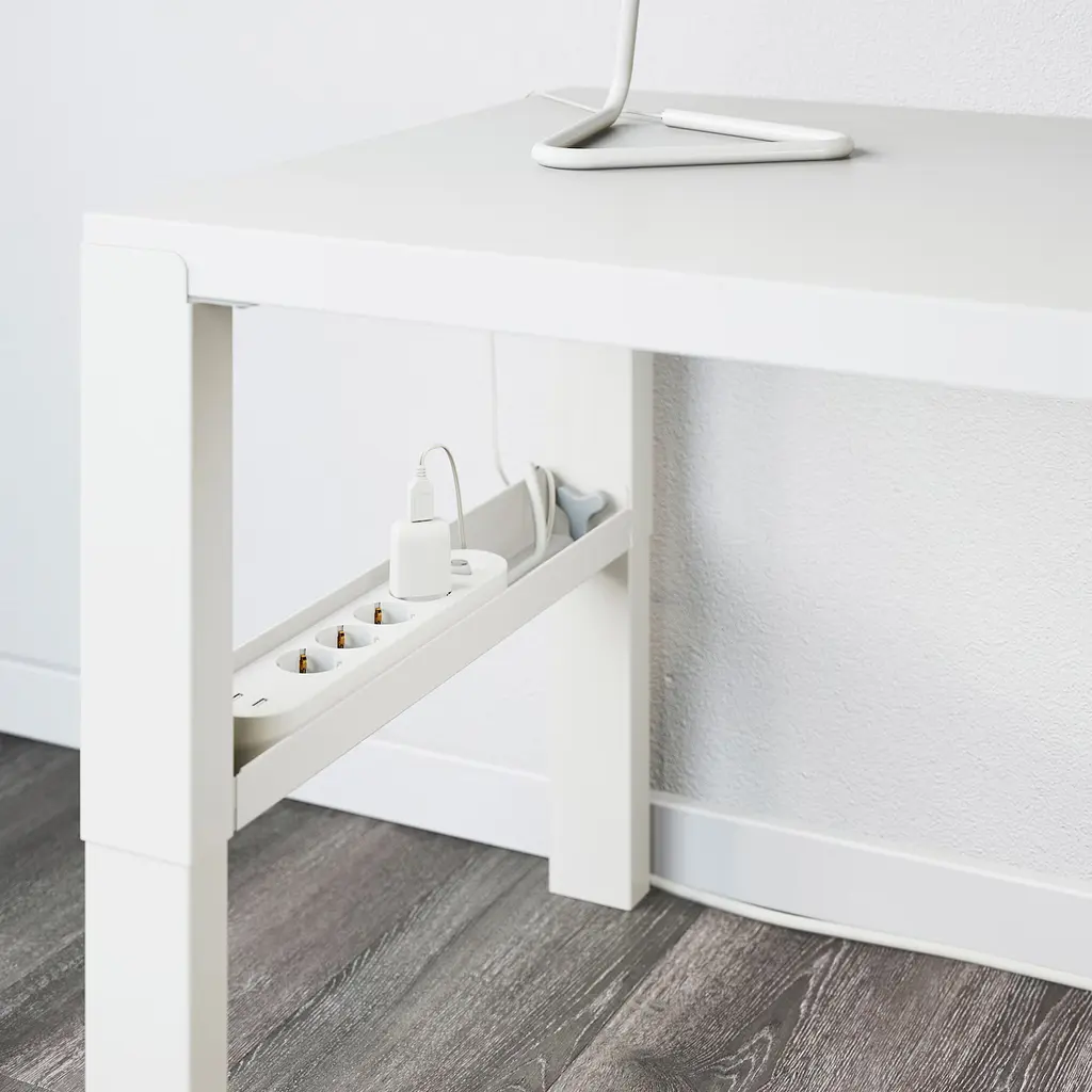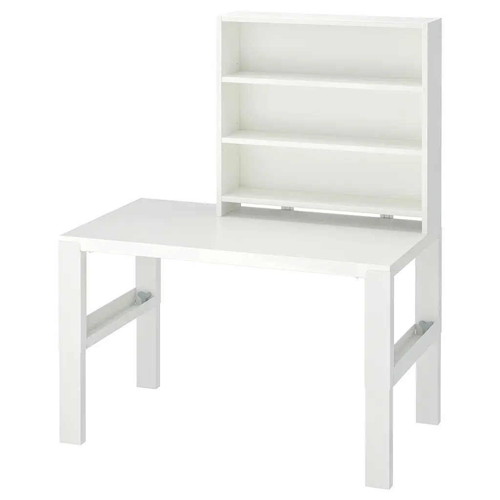 PÅHL Desk with add-on unit - white 37 3/4x22 7/8 ". The desk is easily adjusted to 23, 26 or 28 inches by using the knobs on the legs. You can keep cables and extension cords organized by placing them in the cable holders between the front and back legs.