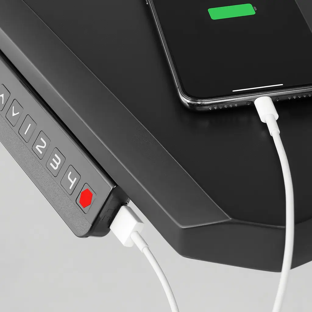 UPPSPEL / GRUPPSPEL Desk, chair and drawer unit - black/Grann black 70 7/8x31 1/2 ". 3-year warranty. Read about the terms in the warranty brochure. The height of the electric underframe can be adjusted from 29 to 47", so you can always sit or stand at a comfortable height.