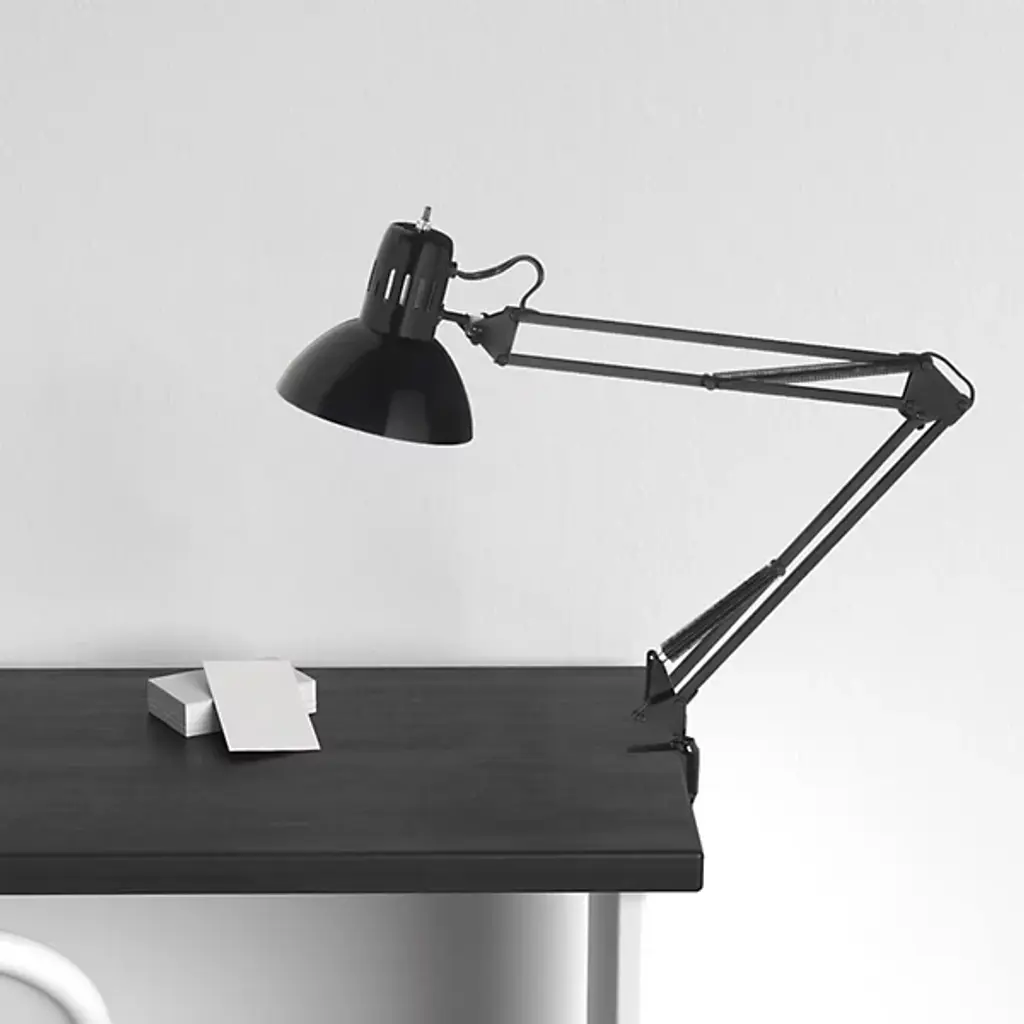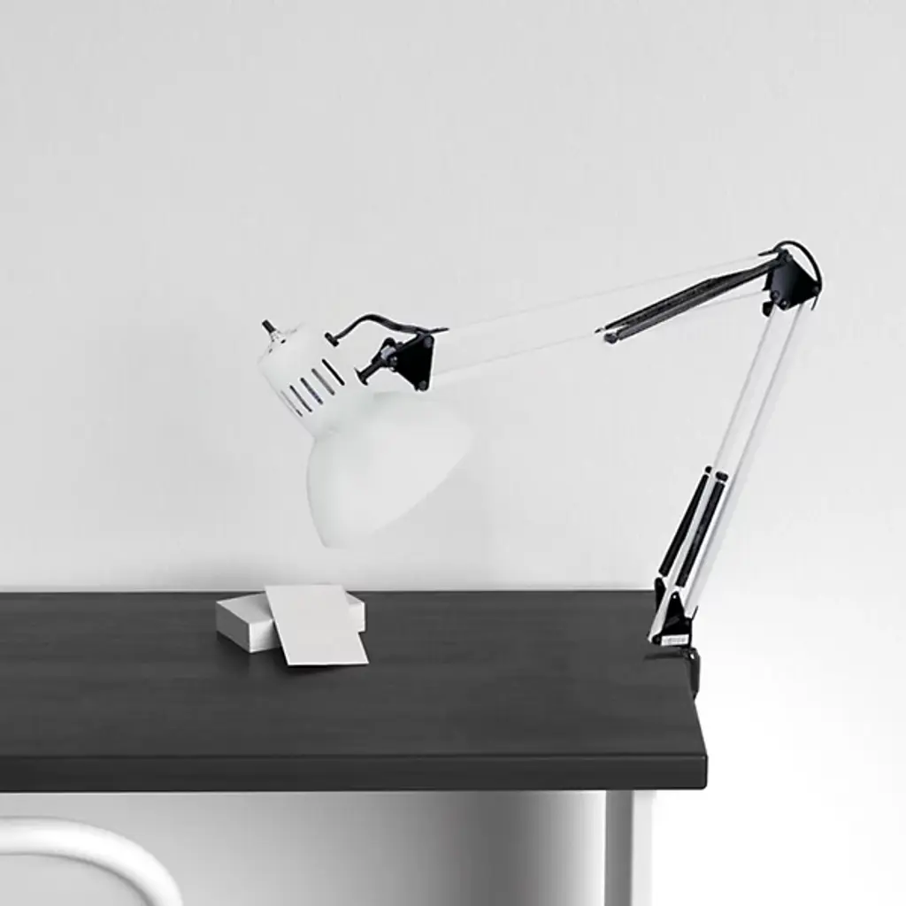 A welcoming, functional piece that showcases a pleasing, traditional form. The 1 Light Clamp-On Task Lamp from Dainolite showcases a solid and smooth metal frame and attaches to a range of surfaces, providing a stable demonstration of light. Spring balanced arms ensure the piece remains reliable with each use. The shade itself contains a single bulb that emits a bright and warm glow that washes the immediate space in a full layer of illumination.
