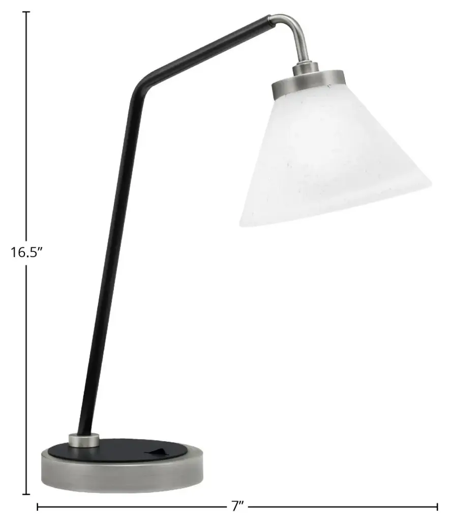 Revamp your space with the 1-Light Desk Lamp. Installation is a breeze - simply connect it to a 120 volt power supply and enjoy. This product is designed to be energy-efficient and LED compatible, ensuring convenience and cost savings. Versatile and suitable for everyday use, this table lamp is compatible with standard medium base bulbs. Maintenance is easy. Simply use a damp cloth and do not use chemical cleaners. With its streamlined plug-in design, this lamp adds a touch of sophistication to any room. The durable glass shade guarantees even light diffusion when in use. Choose from multiple color variations to match your style.Features:• Easy to install and use with 120 volt power supply• Multiple finishes available to perfectly match your space• Energy-efficient and LED compatible for long-lasting illumination• Easily maintain cleanliness with a damp cloth, do not use chemical cleaners• Seamless integration with plug-in design• Versatile lighting options with compatibility for standard E26 medium base bulbsDimensions:Table Lamp• Assembled Product: 5.75 inches wide x 5.75 inches deep x 18.25 inches high• Shade Width: 4 inchesRequirements:• Power Consumption Wattage: 60 watts• Maximum Voltage: 120 volts• Minimum Voltage: 120 volts• Bulb Base: E26• Bulb Shape: StandardFor over 40 years, Toltec Lighting has been dedicated to creating extraordinary lighting experiences for our customers. Our extensive online catalogue showcases a diverse range of contemporary and timeless collections, offering over 40 glass shade choices to personalize each fixture to your unique taste. Whether you seek traditional, transitional, or contemporary styles, our fixtures effortlessly complement any decor. With an unwavering commitment to quality, value, and exceptional service, we prioritize your satisfaction by ensuring hassle-free transactions. Toltec Lighting stands proudly as a beacon of reliability and brilliance, and we look forward to illuminating your home for years to come.