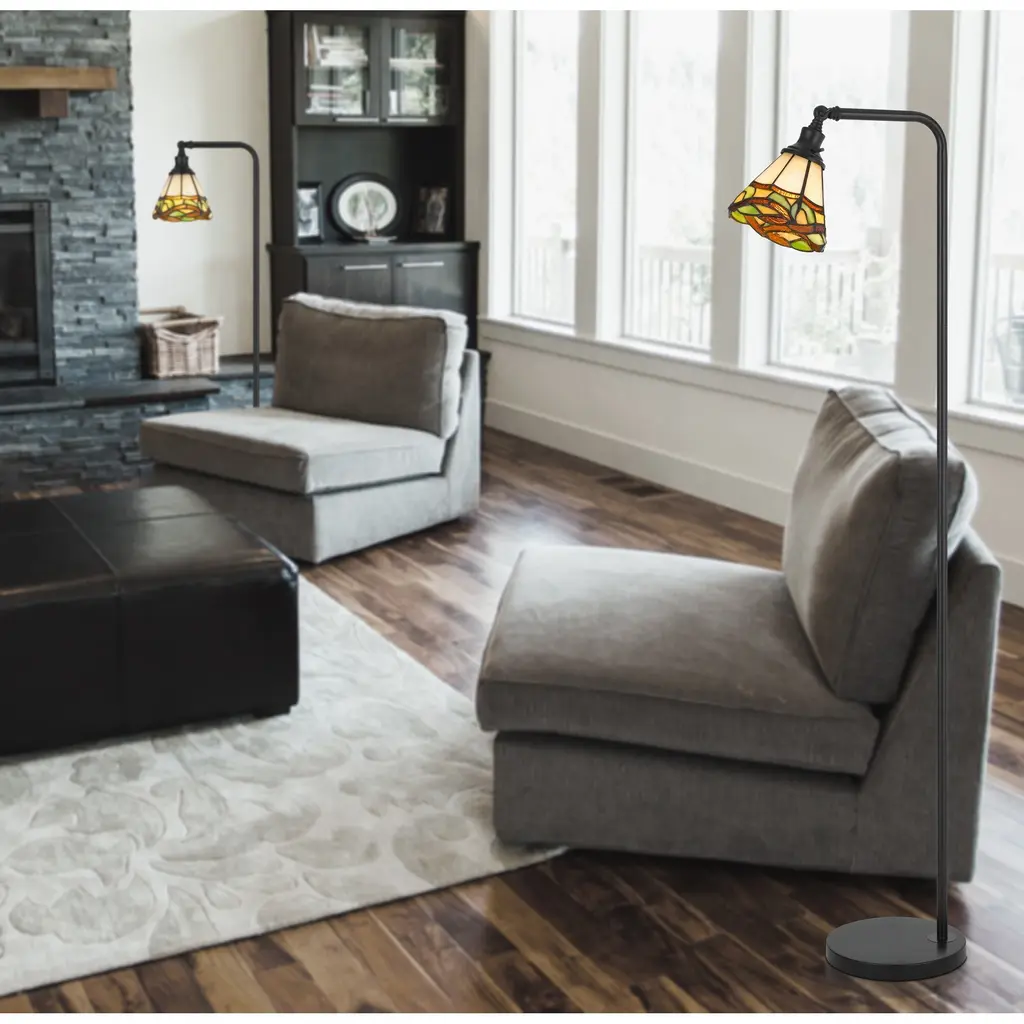 1-Light Desk Lamp, Graphite/matte Black Finish, 7" Blue Mosaic Art Glass