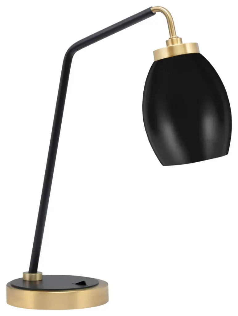 1-Light Desk Lamp, Matte Black/new Age Brass, 5" Matte Black Oval Metal Shade