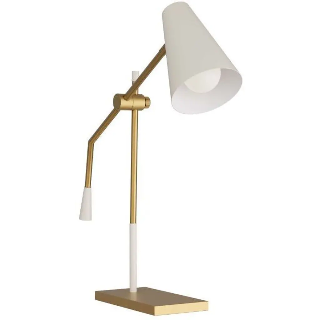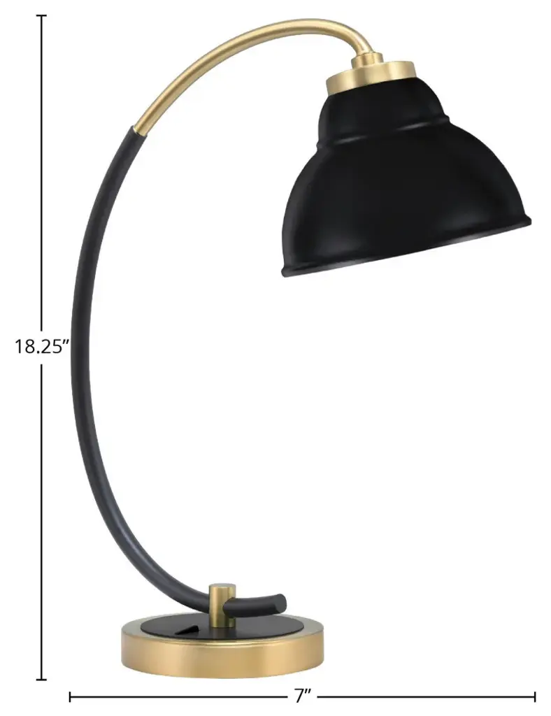 1-Light Desk Lamp, Matte Black/new Age Brass, 7" Double Bubble Metal Shade
