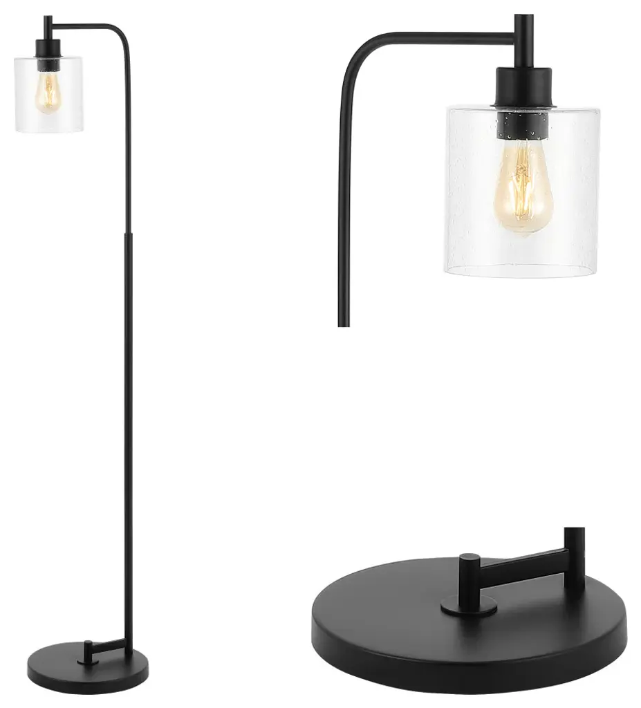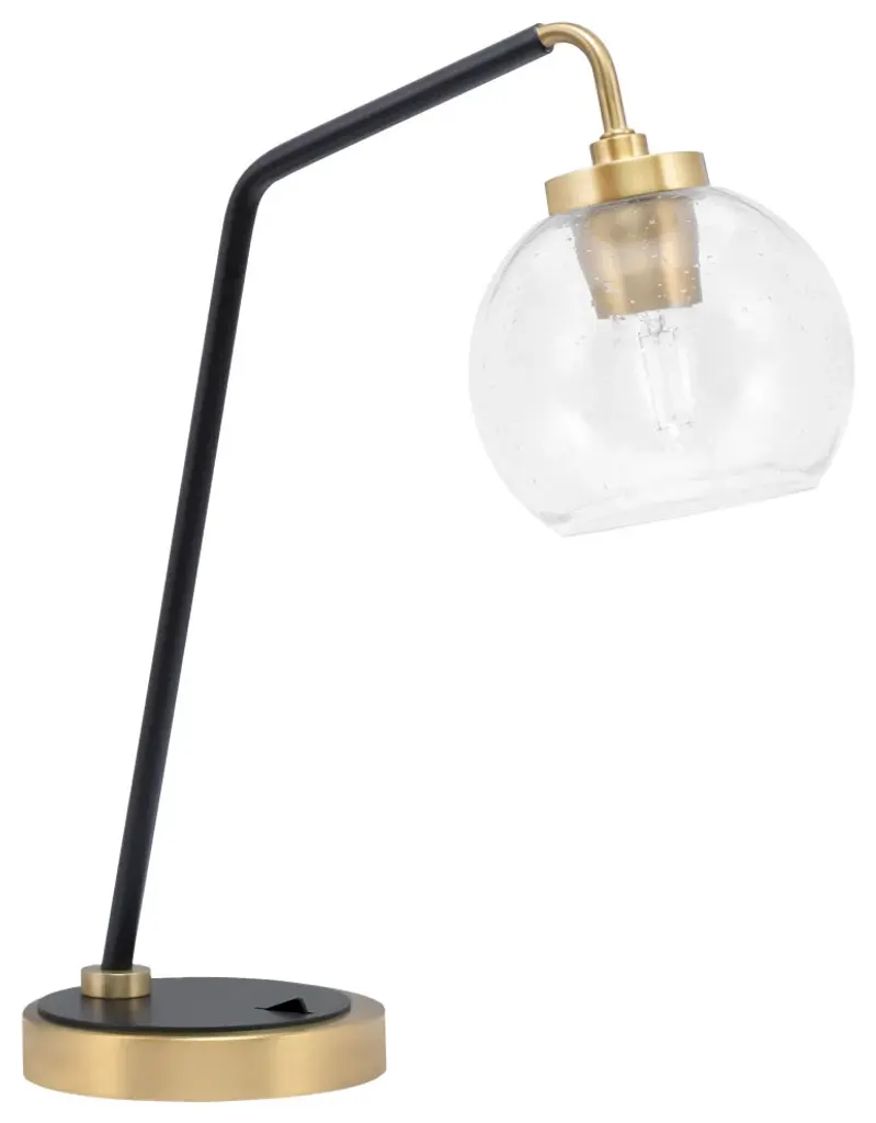 1-Light Desk Lamp, Matte Black/new Age Brass Finish, 5.75" Clear Bubble Glass