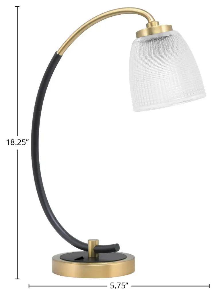1-Light Desk Lamp, Matte Black/new Age Brass Finish, 5" Clear Ribbed Glass