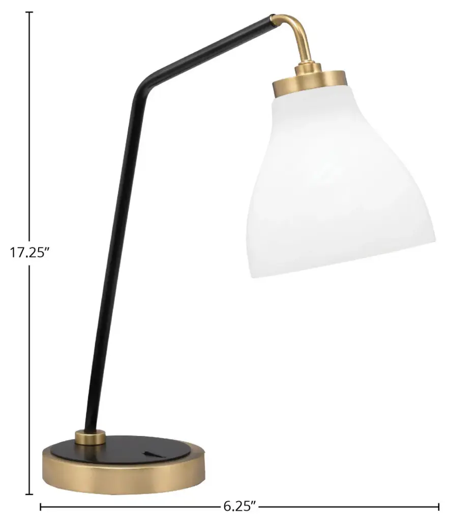 1-Light Desk Lamp, Matte Black/new Age Brass Finish, 6.25" White Marble Glass