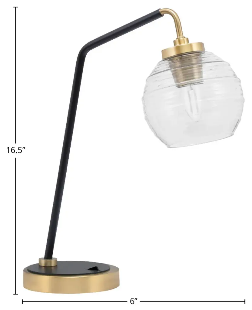 1-Light Desk Lamp, Matte Black/new Age Brass Finish, 6" Clear Ribbed Glass
