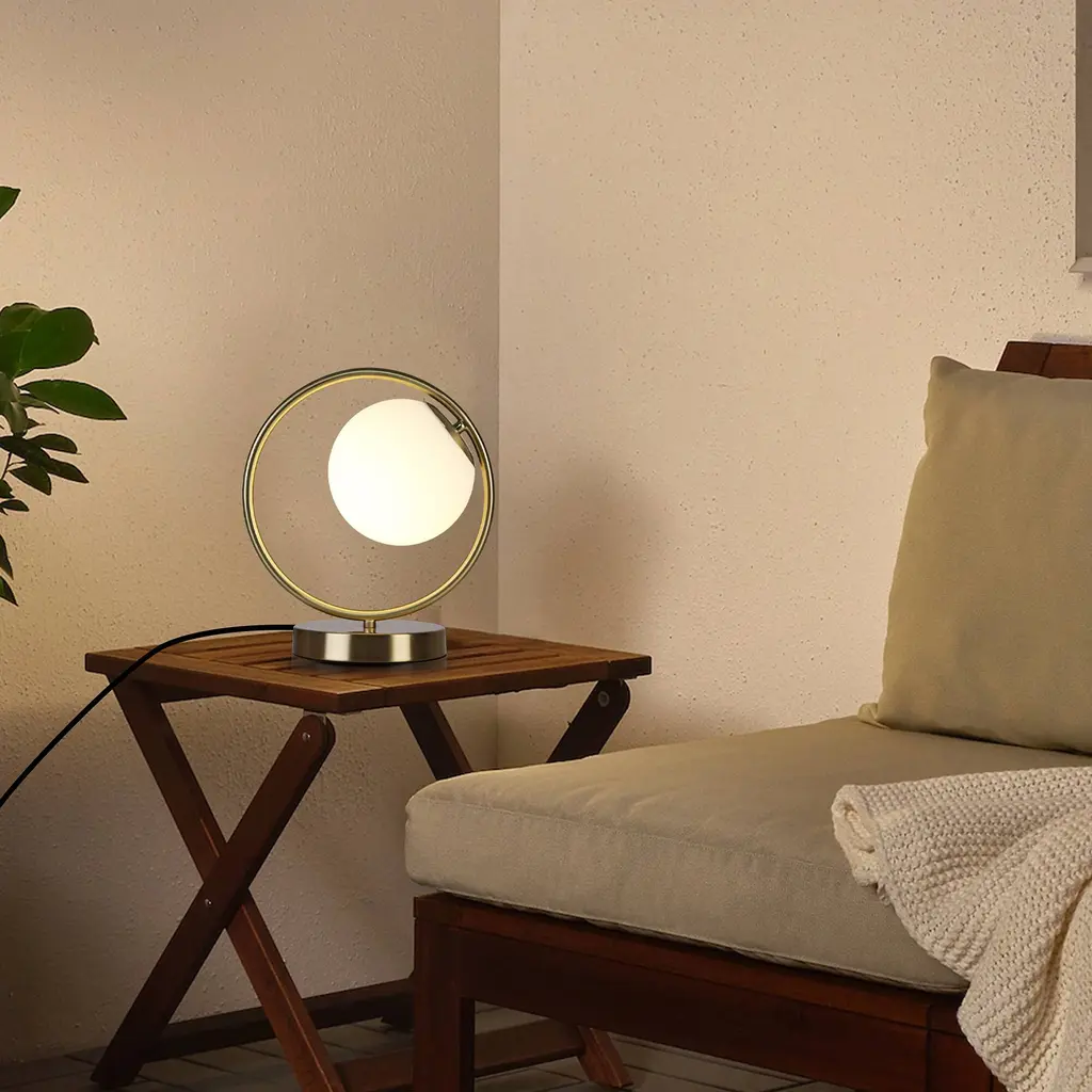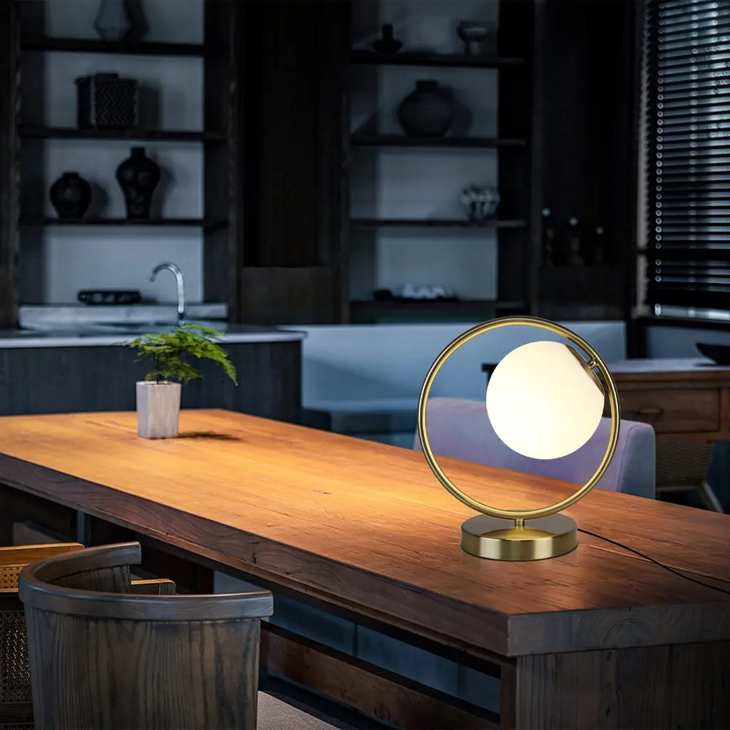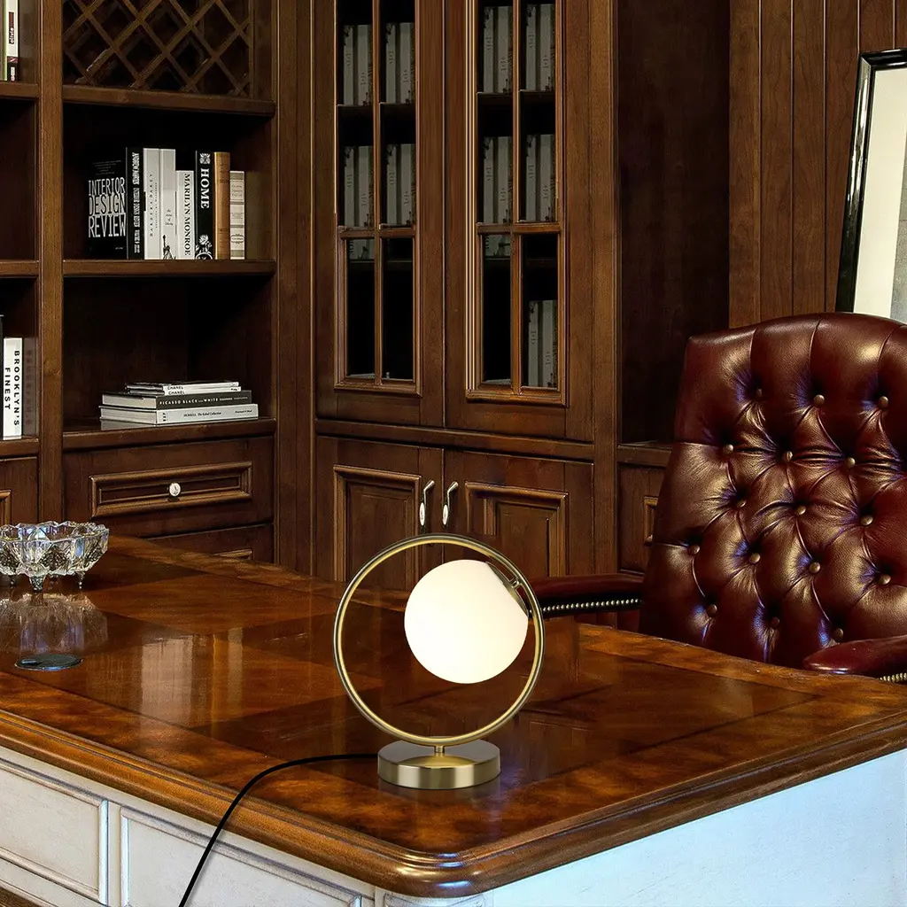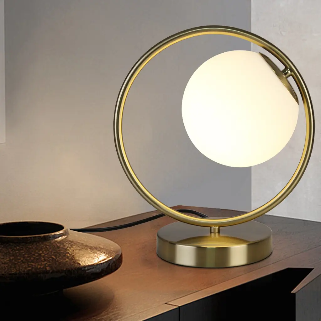 The table lamp for bedroom is a stylish and versatile addition to any décor. Effortlessly complementing diverse design choices, it harmonizes beautifully with modern, vintage, contemporary, and other styles. The bedroom lamps for nightstand standout feature is the frosted acrylic globe, Its lampshade is wrapped with a round metal frame, like a round full moon that sets it apart and sparks conversations. Moreover, its user-friendly design and adaptability make it a seamless fit for various settings, from living rooms to offices. Stylish and unique aesthetic lamp is a great gift choice for family, lover, friends, colleagues, business partners and children. Suitable for Valentines day decoration, birthdays, housewarming, Thanksgiving, Christmas and anniversaries. Add a touch of warmth, romantic and comfort to your home.Features