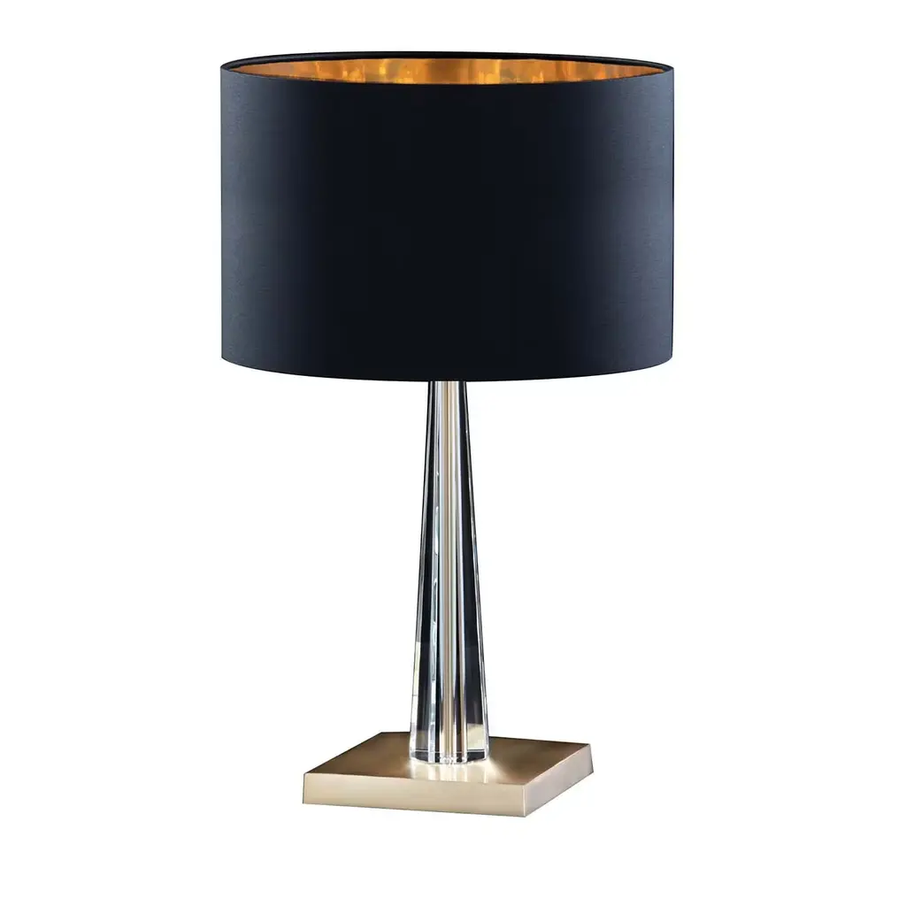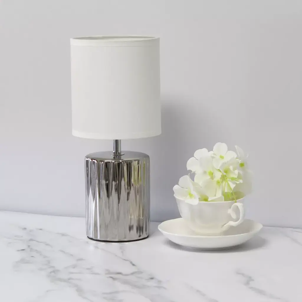 What better way to add a little contemporary decor than to incorporate a burst of metallic flavor into your lighting needs? A ruffled 11.61" metallic gold cylinder base is paired perfectly with a drum fabric shade in black, to compliment your current style in all room types, ranging from your bedroom, down to your personal office.