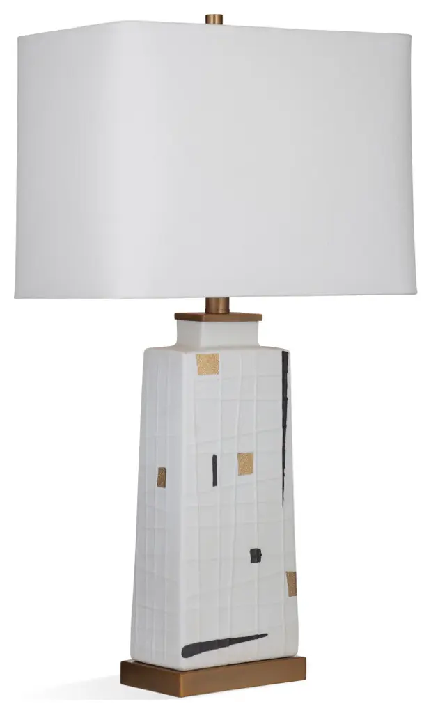 What better way to add a little contemporary decor than to incorporate a burst of metallic flavor into your lighting needs? A hammered 11.81" metallic chrome square base is paired perfectly with a rectangular fabric shade in white, to compliment your current style in all room types, ranging from your bedroom, down to your personal office. Check out all available options!