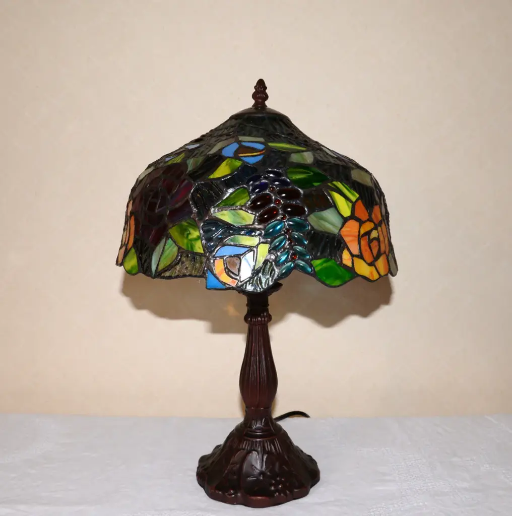 This is a beautiful handmade Handcrafted stained glass table lamp. This is an elegant designed lamp in vivid stunning colors, it would be an enhancement to any room in your home. copper foil glass, zinc alloy base. detail is great and in perfect condition, We also have more lamp in my store, Please check our ebay store for more lamps. Don''t let it pass you by! Total height: 19" Total Width: 12" Socket used: A 40W bulbs (not included) Material: Copper Foiled Stained Glass, zinc alloy Base (not resin)
