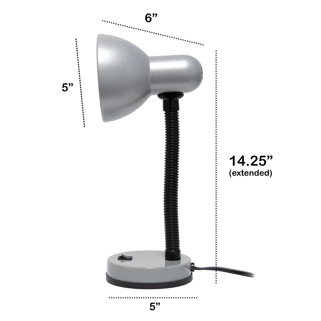 Sometimes you just need a classic styled lamp to sit and illuminate your space without all the glitz and glam. This desk lamp made primarily of metal with a flexible gooseneck is ideal for those looking for a lamp that will fit just right in all style and décor environments ranging from your office to your bedroom nightstand, and even college dorm.Features: