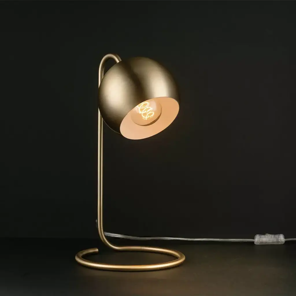 The matte brass finish of the Novogratz x Globe Richmond Desk Lamp highlights its organic curves and orb shade to create a seamless blend of functionality and style. The white interior shade reflects the light outwards creating an ideal light source for your desk, nightstand, or side table. Further adding to the mid-century modern aesthetic, this lamp sits at 15-inches high and can be a statement lighting piece in any room. Decorate with the Novogratz and Globe Electric - lighting made easy.