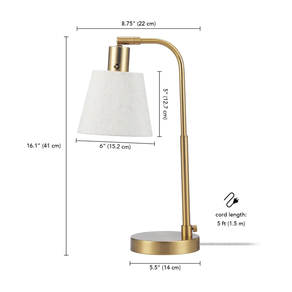 16" Matte Brass Desk Lamp With White Linen Shade - 6" - Matte Gold - 6"
