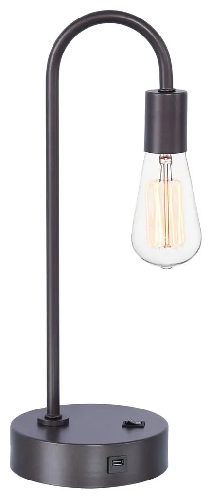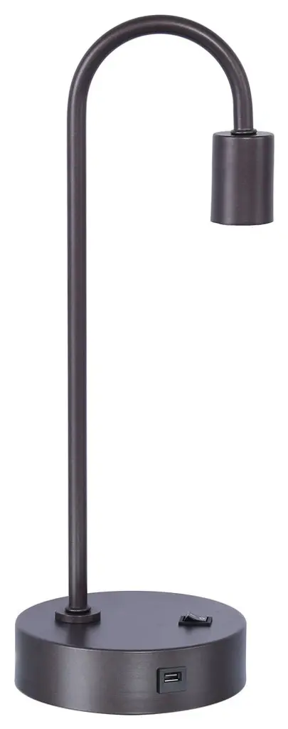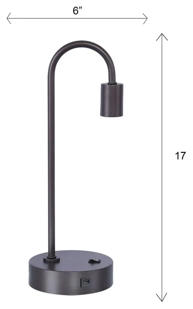 This modern desk lamp showcases an arched sleek gray slate body with a convenient built-in USB port and rocker switch. Featuring an industrial inspired exposed bulb design, this minimalist task lamp is the stylish solution to your lighting needs. Lamp is 17" tall and has a round 1. 5"H x 6"D base. Uses 40-watt maximum bulb (not included) and features an E26 socket with a 2-way (on/off) rocker switch. Get custom colored lighting and effects by using an appropriate 40-watt maximum smart bulb (not included), or plug your lamp into a smart outlet (not included) that can be used with virtual assistants such as Amazon''s Alexa or the Google Home Assistant for ultimate control.