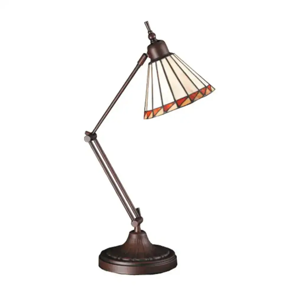 As distinctive as beautiful Peacock fanning feathers in the wild; no two shades will ever be the same as their individuality can be as remarkably unique as their personality. This artistic creation utilizes swirling opalescent art glass background combinations including Beige; Yellow Pinks; Greens; Ivories; Bluish Whites; Blues; and Spring Greens; and accented with Amber jewels. The lamp is created with the famous Meyda Tiffany copperfoil construction technique and complemented with a base featured in a Mahogany Bronze finish. The Tiffany Jeweled Peacock Desk Lamp is included in our American designed; handcrafted Tiffany Reproduction Collection. UL and cUL listed for dry locations.