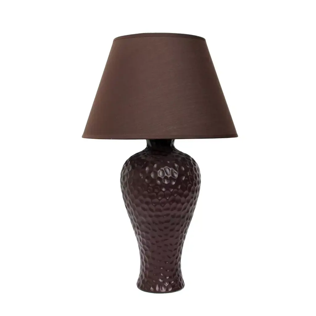20.08" Traditional Ceramic Texture Imprint Winding Table Desk Lamp With Matching Fabric Shade Brown - Creekwood Home: Etl Listed