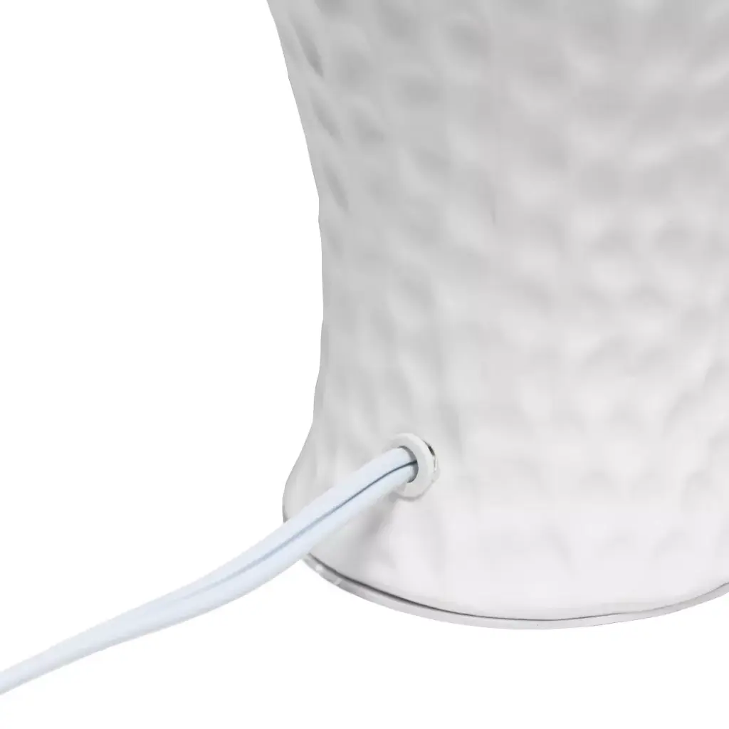 This beautifully designed 20.08" table lamp made primarily of ceramic features a bendy and curvy shape with an imprint style texture throughout its painted base, in the color of your choice. It is then paired with a matching empire fabric shade that compliments its surrounding environment perfectly while illuminating your space just right.