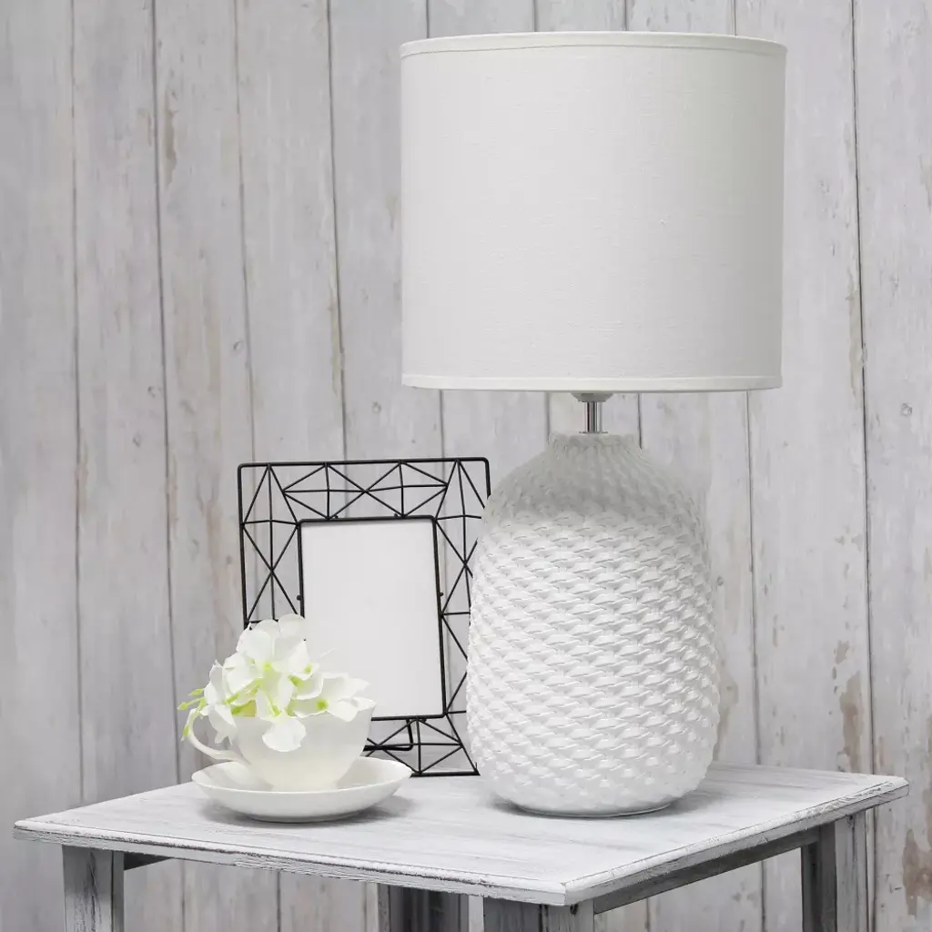 A beautifully textured oblong base made of ceramic comes in a variety of colors, and is each paired with a complimenting white drum fabric shade. This 20.4" lamp is perfect for those looking to add a bit of an upgrade to your everyday table lamp. The best part? It's ideal for just about any room in your space.