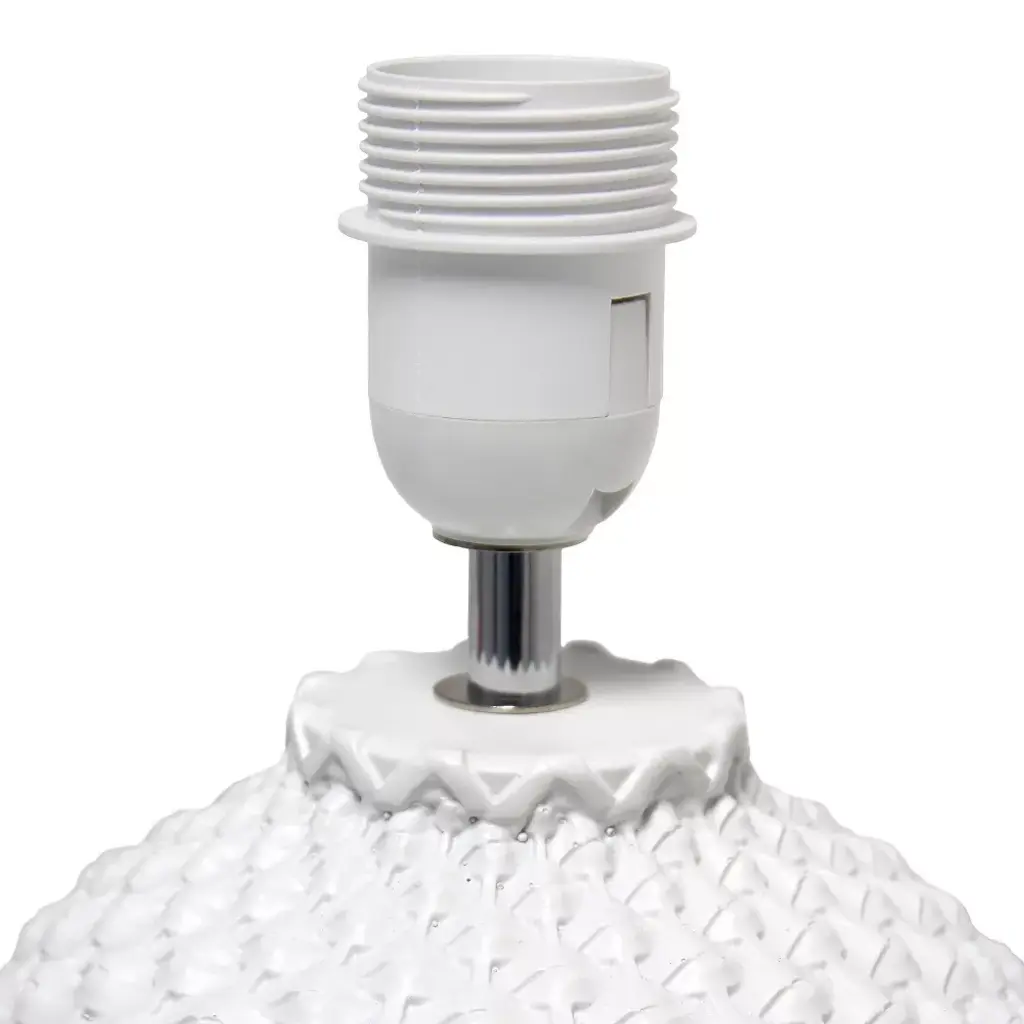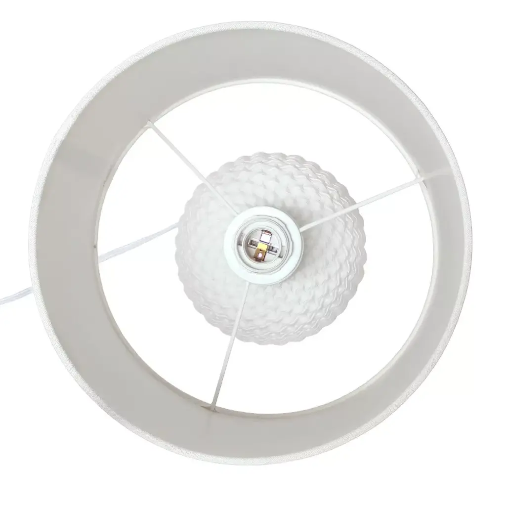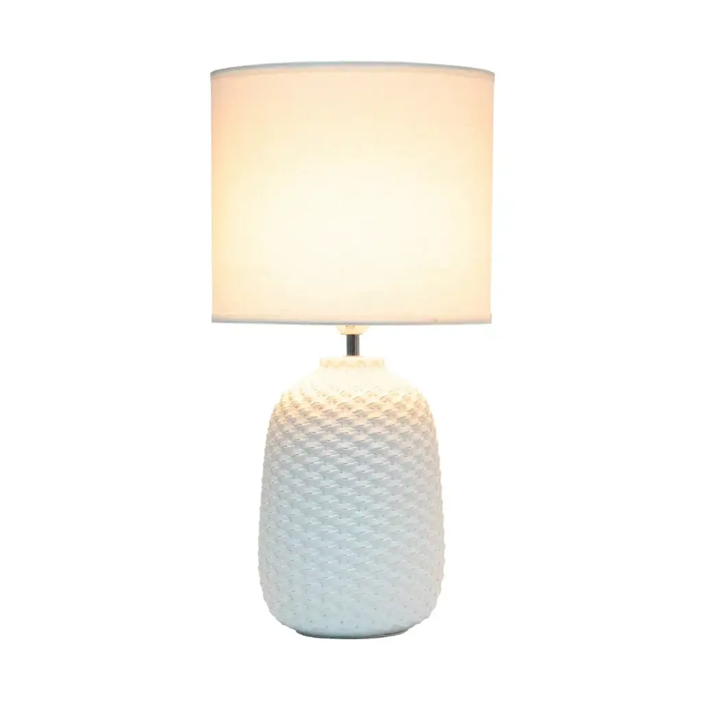 A beautifully textured oblong base made of ceramic comes in a variety of colors, and is each paired with a complimenting white drum fabric shade. This 20.4" lamp is perfect for those looking to add a bit of an upgrade to your everyday table lamp. The best part? It's ideal for just about any room in your space.