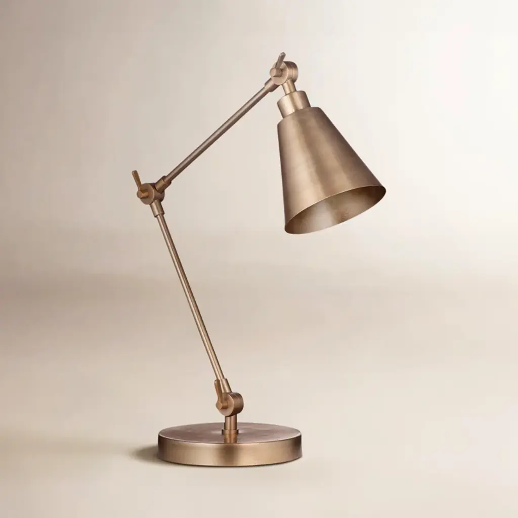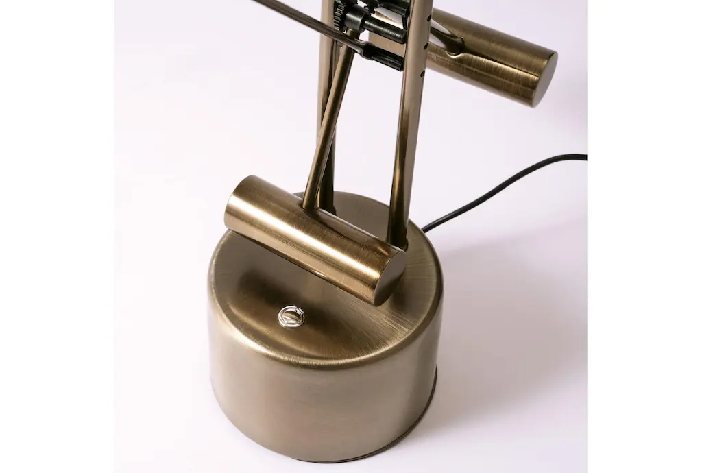 Enhance your workspace with the 28 Inch Brass Metal Cantilever LED Desk Task Lamp. This modern lamp features a sleek design in antique brass, perfect for any contemporary setting. The integrated LED lights provide efficient and bright illumination, making it ideal for small spaces.