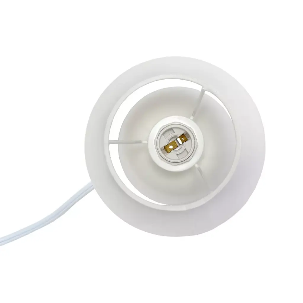 A petite 8.66" table lamp made primarily of ceramic with its base in the shape of a round orb sits beneath a matching colored tapered fabric shade for an overall effortlessly styled lamp suited for both your decor and lighting needs. A number of color options are available in this style, to compliment your decor just right.