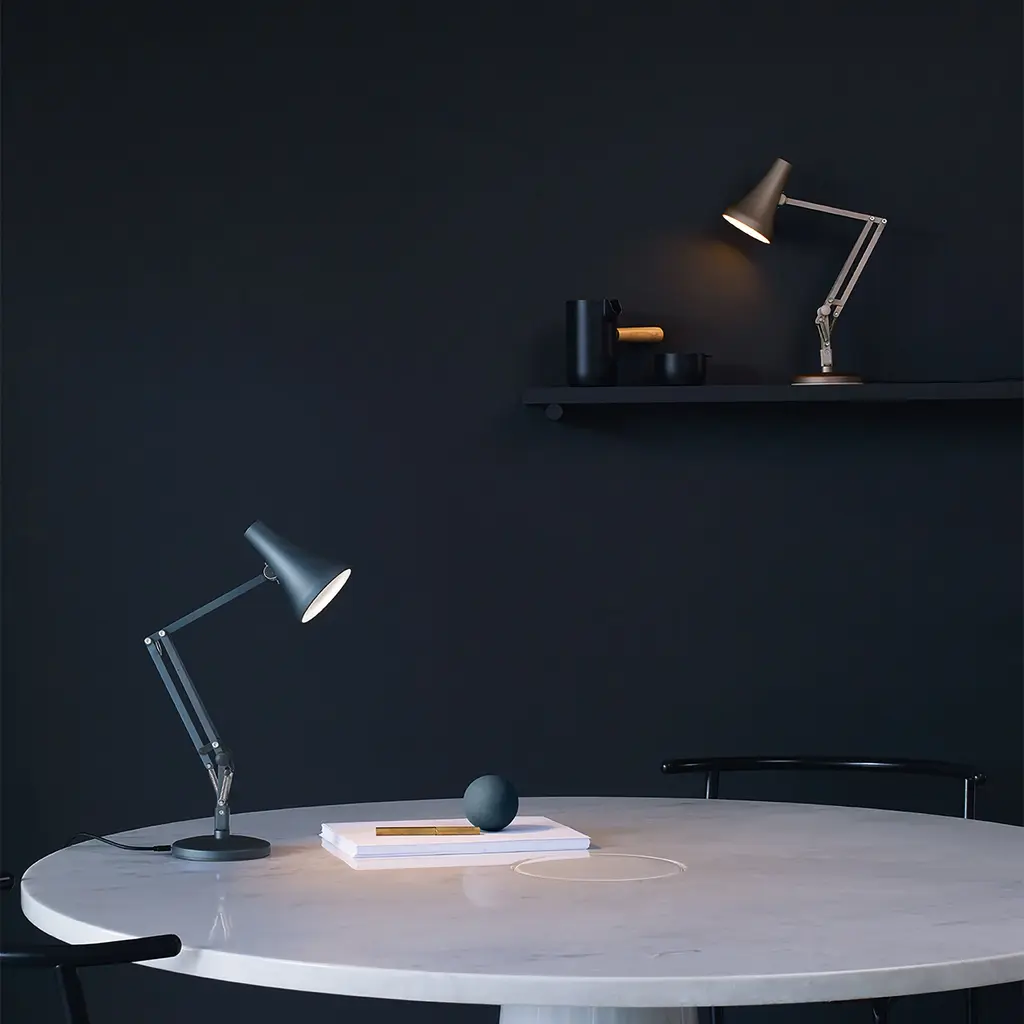 Brit stalwart Anglepoise updates its 1970s Model 90 with Mini Mini. At half the size of a standard desk lamp, it employs a long-life, dimmable LED module integrated into the shade (providing focused light for up to 20,000 hours.) The lamp is powered via USB and plugs into the wall or either a laptop or portable battery for on-the-go portability.