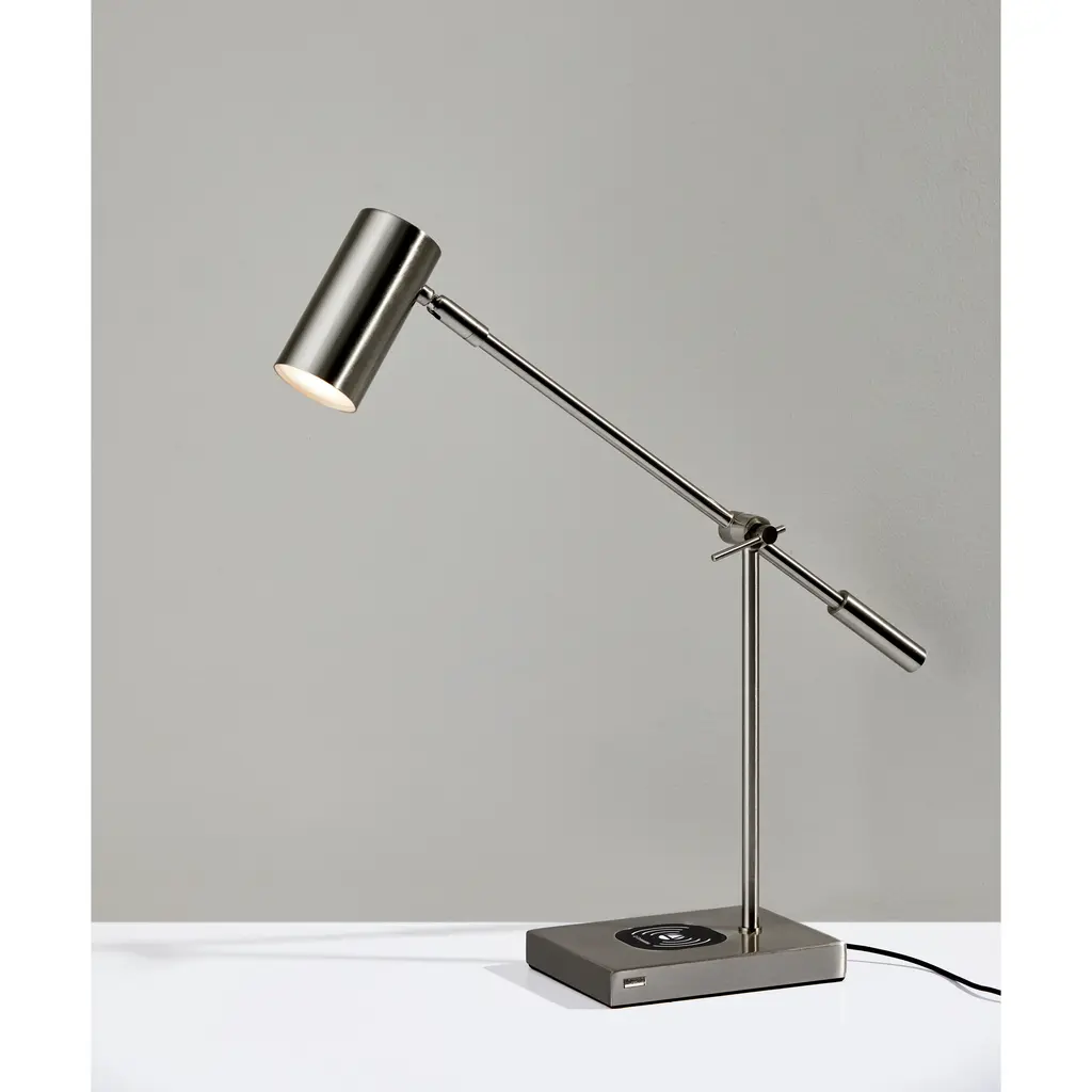 Adesso Collette Led Desk Lamp With Adesso Charge Wireless Charging Pad - Brushed Steel