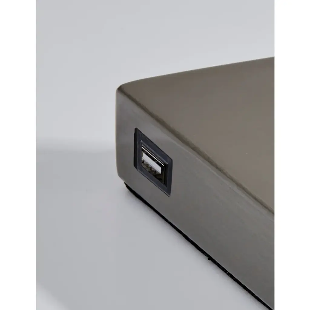 Recharge your intellect and your mobile devices simultaneously with this office, home, and school desk lamp. This desk lamp's LED light provides efficient, lasting illumination you can operate via an easy, quick-touch switch. Adjustable joints let you tweak the lighting height and direction, and an integrated USB and AdessoCharge Qi inductive pad fuel your devices.Sleek Brushed Steel Finish or Matte Black with Antique Brass Accents Rectangle Brushed Steel or Matte Black Base with USB portTouch switch on shade with 60-inch black cordAdesso Charge Qi Inductive Pad is located on base. Many smartphones have this Qi technology built in already, so you just place your phone on the pad and it will charge right up!Compatible with Apple iPhone 8 / 8 plus / X / Galaxy Note 8 / S8 / S8 plus / S7 / S7 edge / S6 / S6 edge / S6 edge+ / Nexus 4 / 5 / 6 / 7 / LG G3/ Microsoft Lumia 1520, 1020, 930, 929, 928, 920Safety Rating: ETL Listed1-Year Limited Manufacturer WarrantyWidth: 5.00 in.Height: 12.25 in.Max Height: 22.25 in.Extension/Depth: 22.50 in.Weight: 3.17 lb.Shade Dimensions: 5 in. H x 2.75 in. Dia.Base Measurements: 5 in. x 7 in. RectangularBulb Information:Bulbs Included: YesBulb Category: LEDPrimary Bulb(s): 1 x 7 wattsColor Temperature: 3000KColor Rendering Index: 80.0000Total Lumens: 450Product Rating:Safety Rating: ETL ListedAdesso charge: 5W, Output: 5V DC 2A, Input: 5V DC 1AUSB: 3W, Output: 5V DC 0.5A, Input: 5V DC 0.5AAdaptor: 20W 5V 4A*****If your smartphone doesn't support Qi wireless charging, you will need to purchase a Qi compatible case, which is sold through a variety of retail channels. Or you can also charge your smartphone with the USB port that is also included in the lamp base. *****