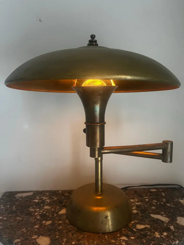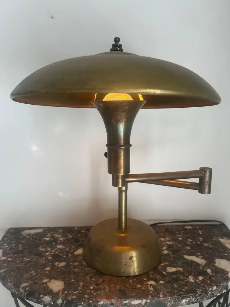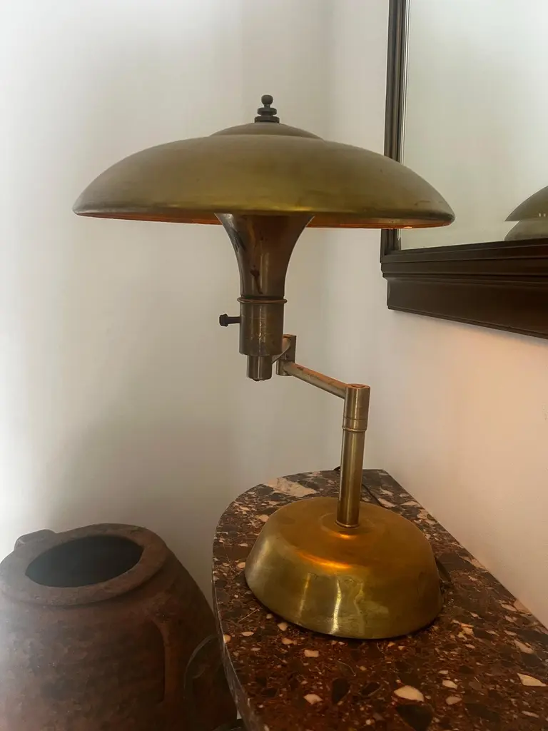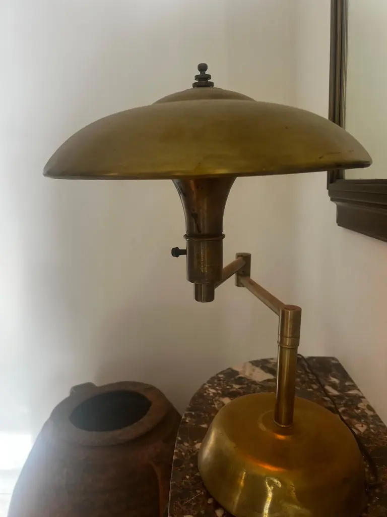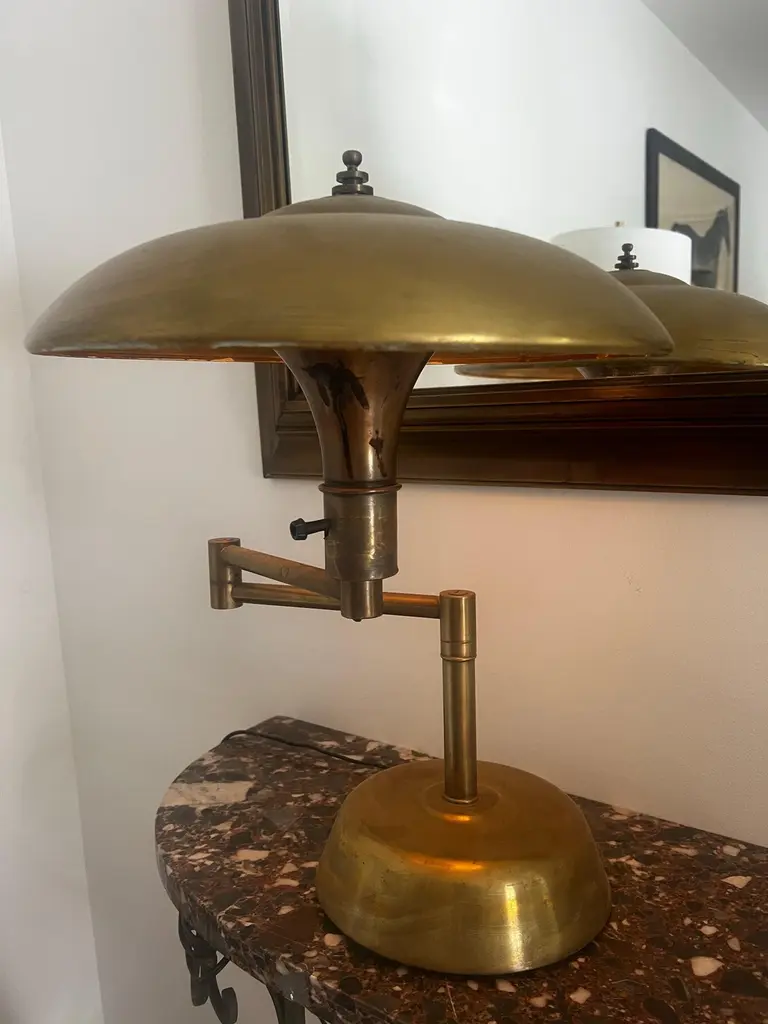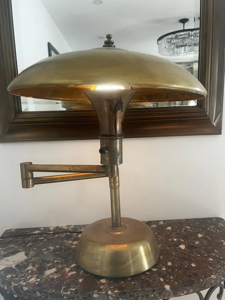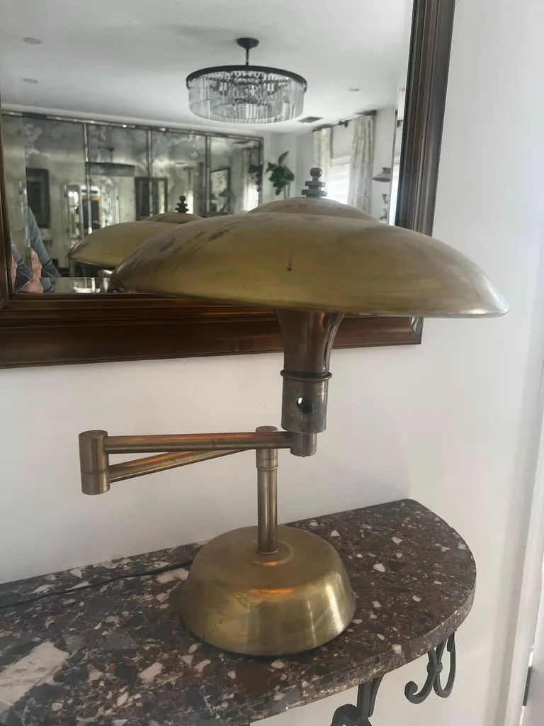 Art Deco/Mid Century Modern Desk Lamps. Also work as bedside or table. These are rare to find especially as a matching articulating pair. They do have minor signs of age, but mostly just patina that can be polished away. Listing individually, but open to offers for the pair. See images.