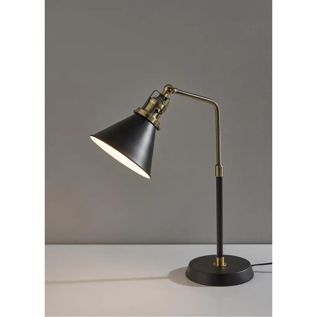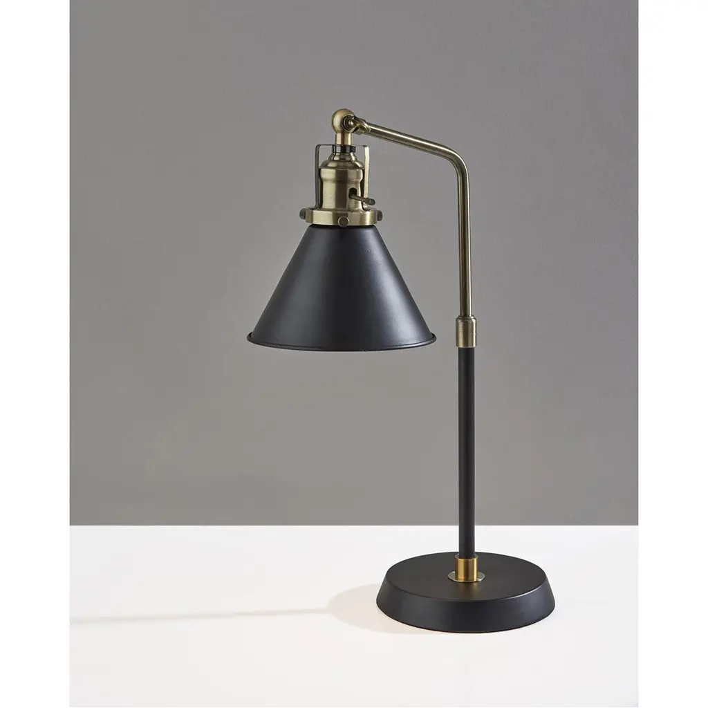 Arthur 19.5 Inch 60 Watt Black And Antique Brass Desk Lamp Portable Light, Simplee Adesso