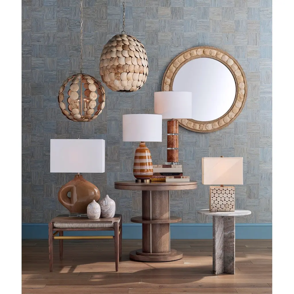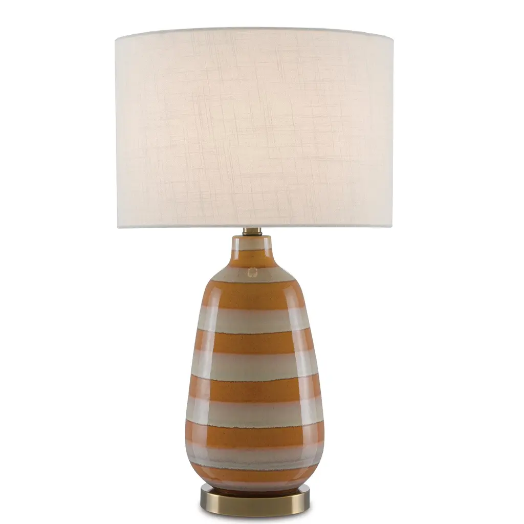 The August Table Lamp inspires thoughts of autumn with its ceramic surface glazed in cream and orange hues. The alternating lines on the orange table lamp are artistically rendered, the lighter tones of the body echoing the palness of the natural linen shade.