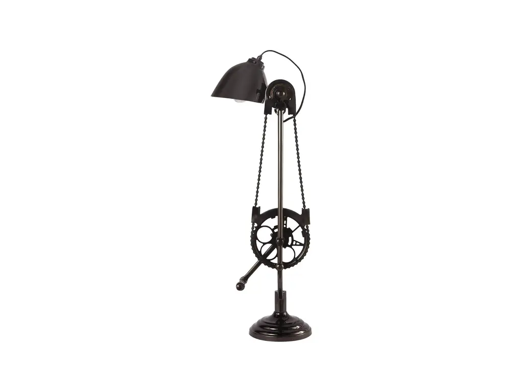 Everything old is new again. With spokes, pedal and gears, our lamp re-imagines illumination with the wonders of mechanics and movement. Crafted for us in an old bike shop in India, the vintage styling is counterbalanced by a swiveling asymmetrical hooded shade, which can be aimed down for task lighting or up, as a torchiere.