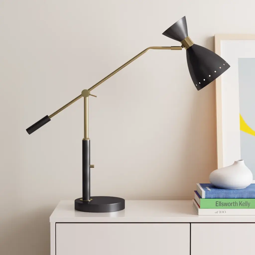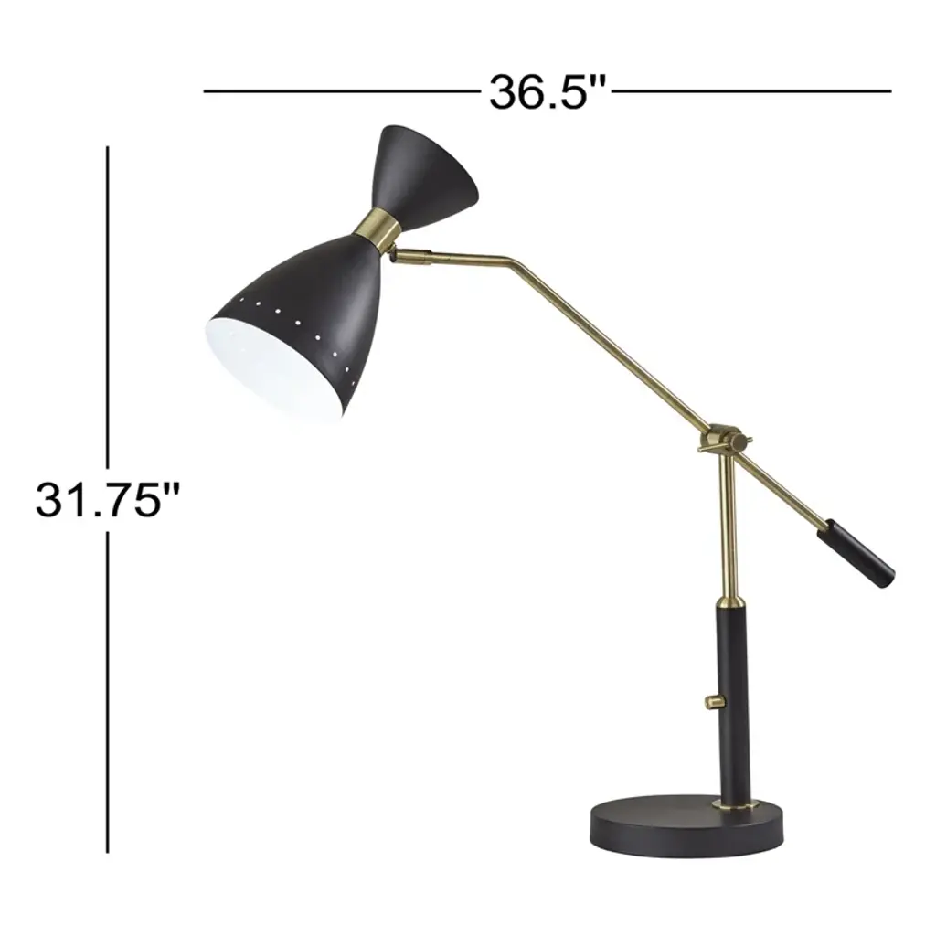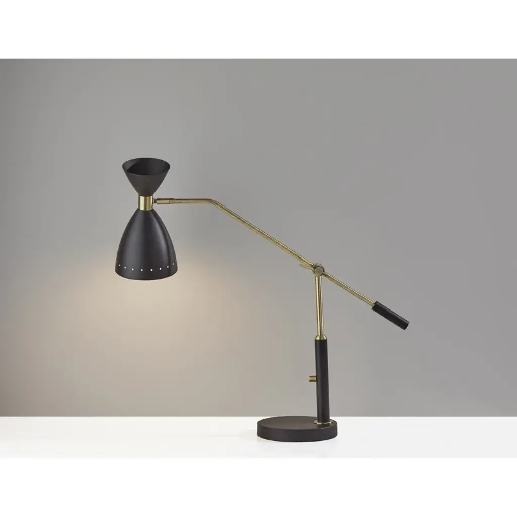 Add some mid-century flare to your workspace or bedroom with the Bimini adjustable desk lamp. An adjustable oversized lamp shade and extended adjustable arm provide light where it is needed while putting a modern spin on your décor. Black and antique brass finishes are mixed to create the quintessential mid-century style. All Joss & Main lighting products are either UL or ETL listed, meaning that they have been tested and approved to meet the government-regulated safety standards for the USA.