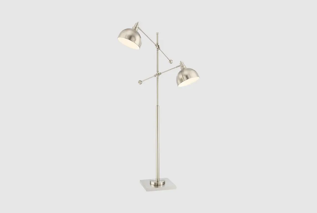 Add some polish to your home office or workspace with the Blakely double desk lamp. The timeless design features a slender articulated arm with swivel shades for directed light. A rocker switch in the lamp's base offers an effortless touch for elevated desktop style.