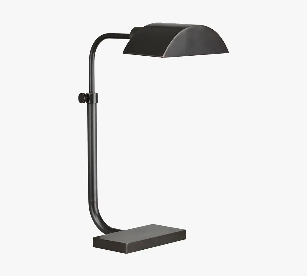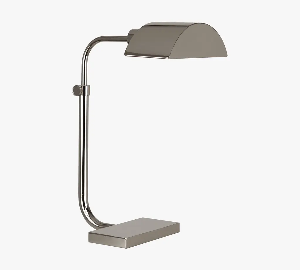 A classic task lamp silhouette is made more modern with slim lines and a simplified design. The polished metal base (in your choice of finish) and flared drum shade in traditional linen are tidy and crisp but still casual. A convenience we love: the height and lighting level are adjustable.