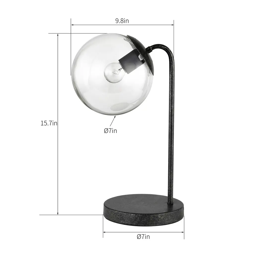 40W Brookline metal arc table lamp with electoral plated smoked glass shade and on off rocker switch