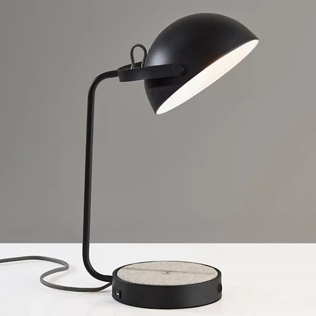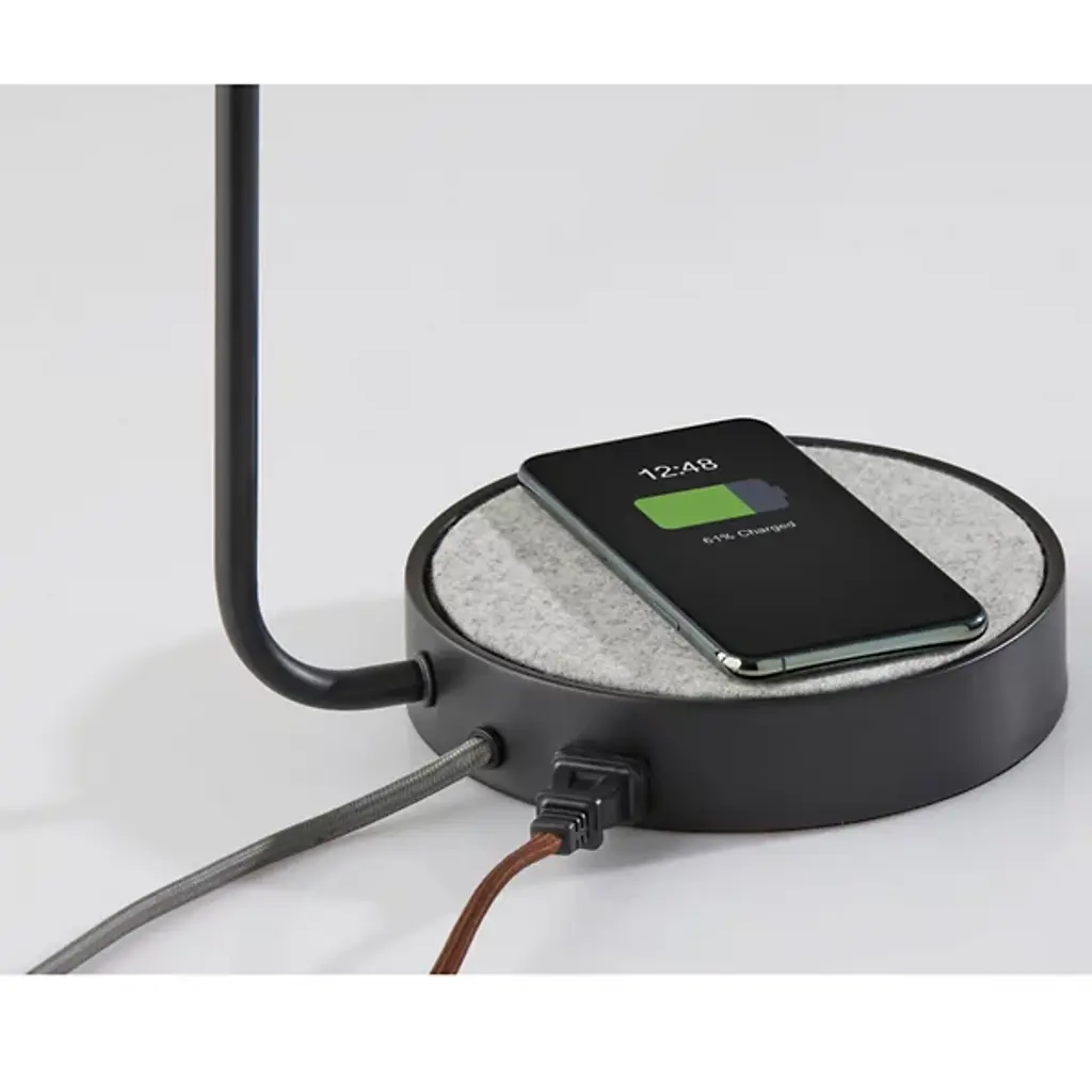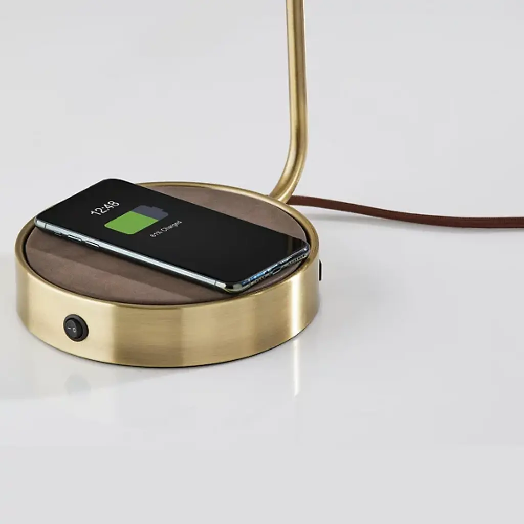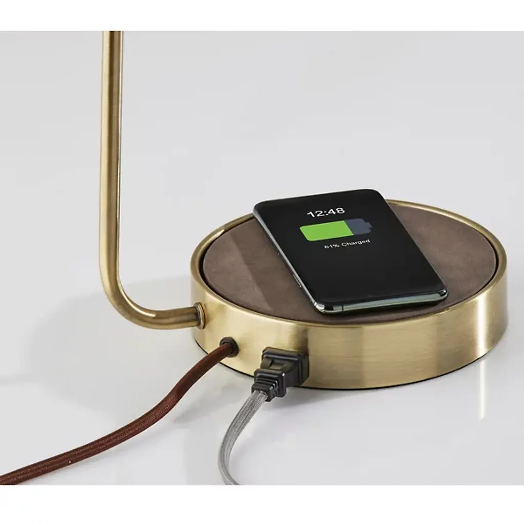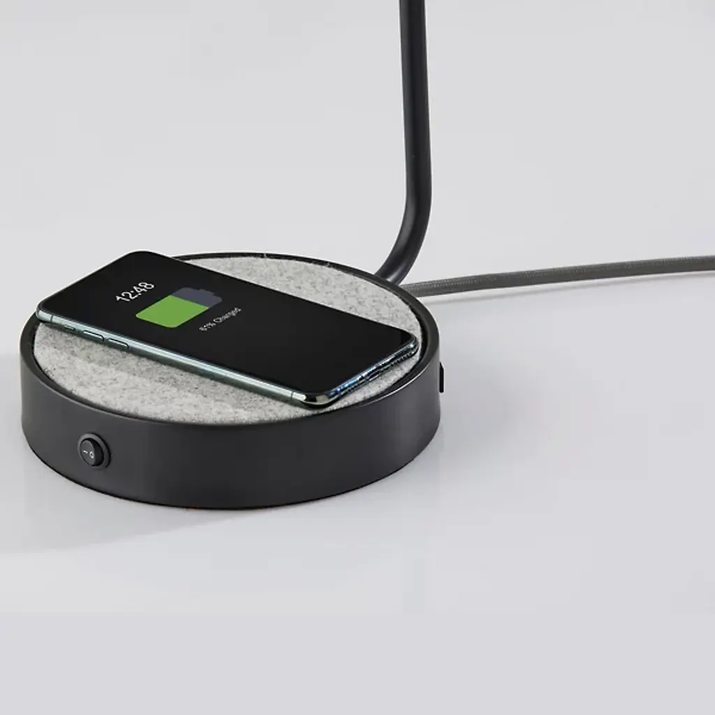 Add a welcome warmth to your work areas with the elegant package of the Brooks Wireless Charging Desk Lamp from Adesso. A stylish mix of mid-century modern elegance with clean contemporary lines, its sleek disc base hides even more appealing functional elements. While a single arm and curved bracket suspend a potent light concealed in a posable dome shade, a charging pad and USB port work to power peripheral devices like phones, pads, and e-readers, even while the light is on.