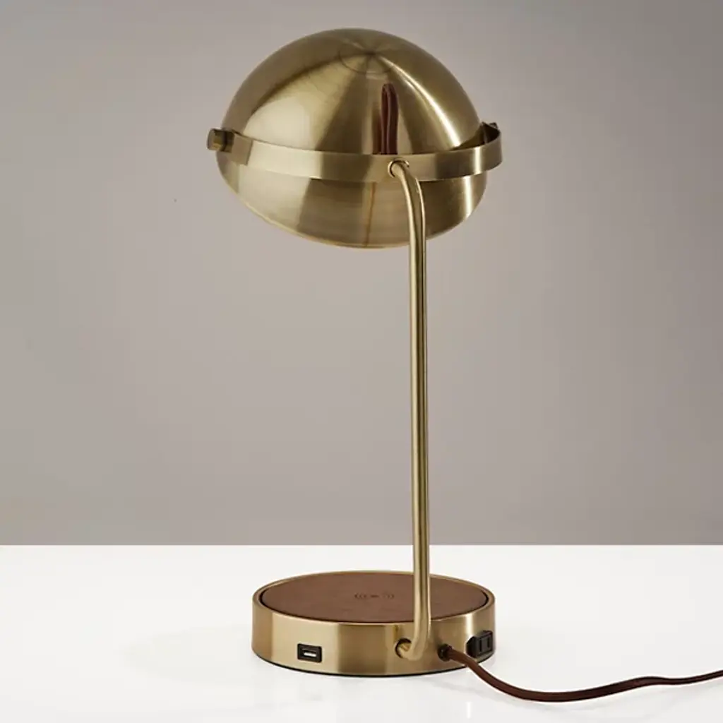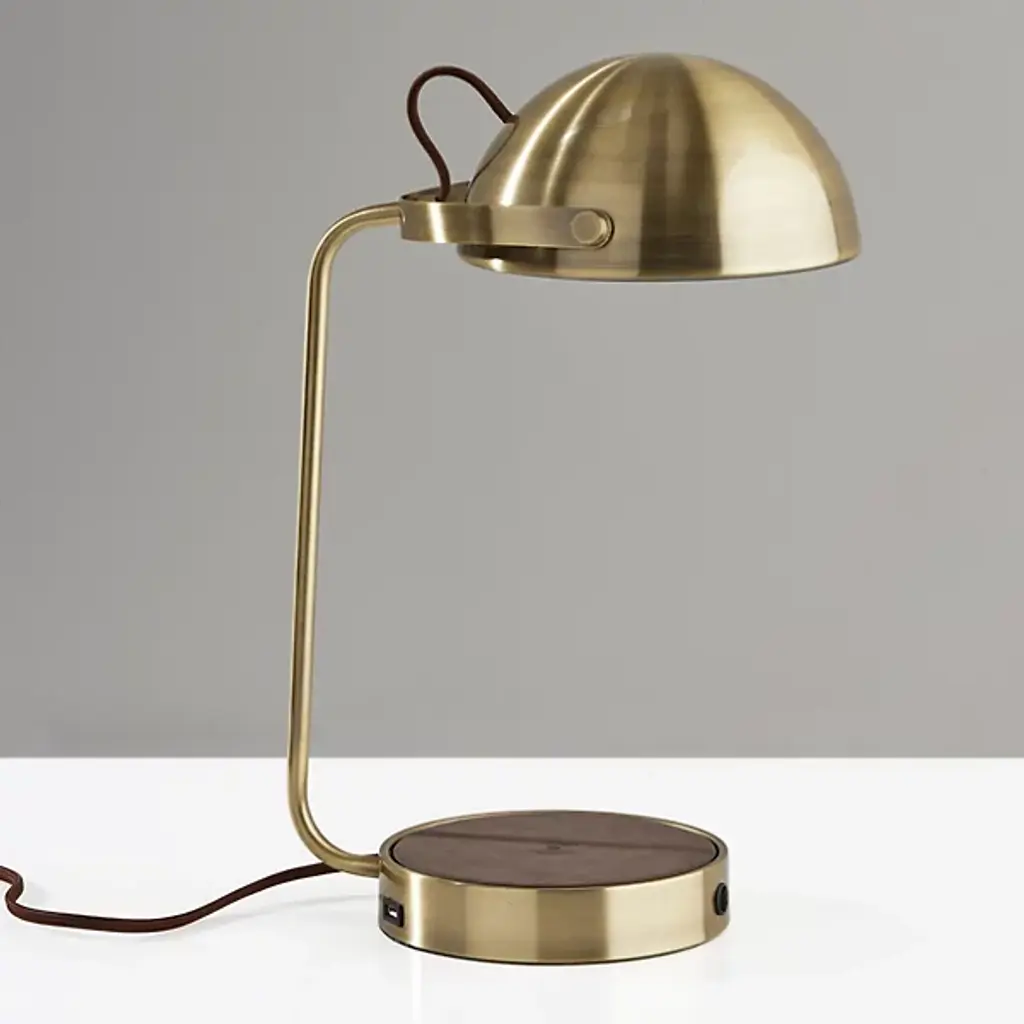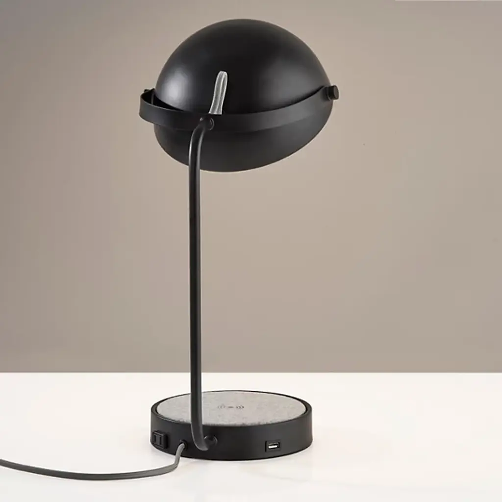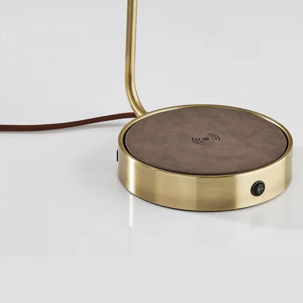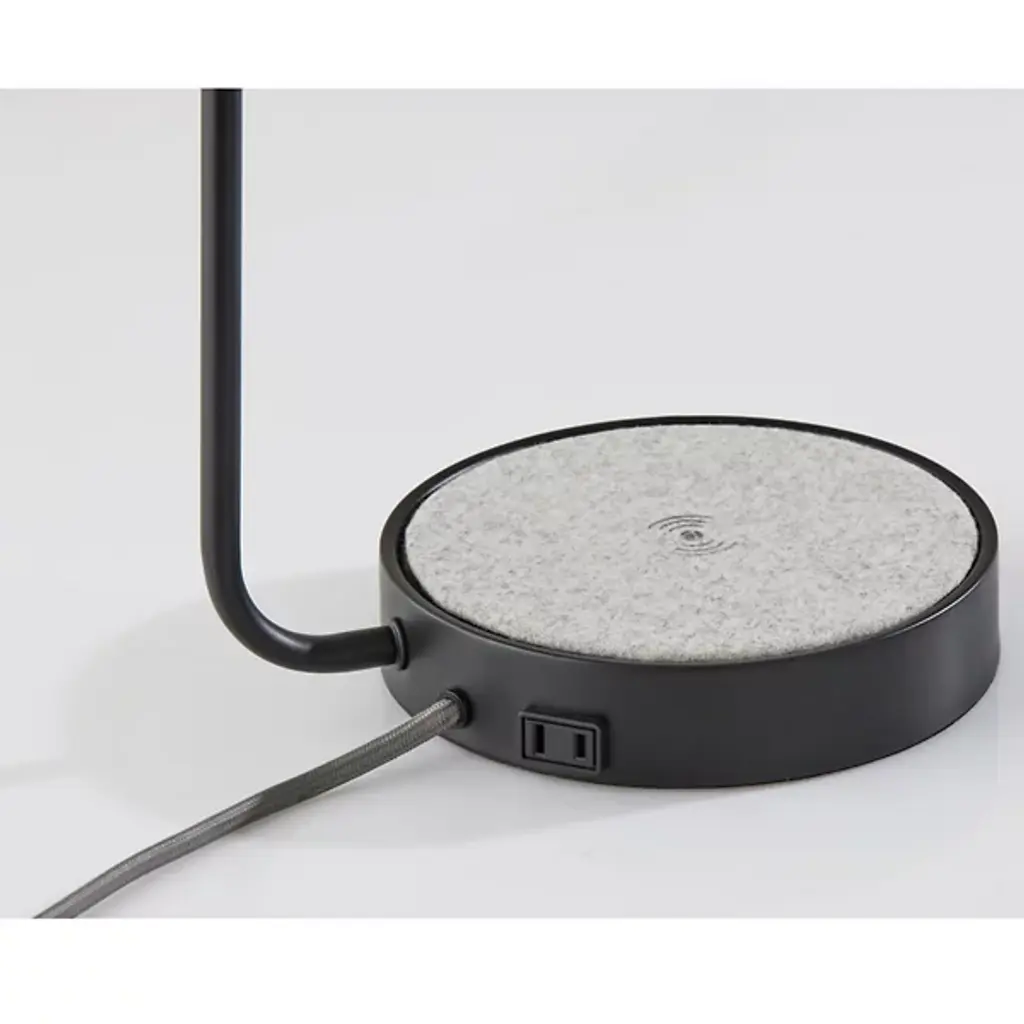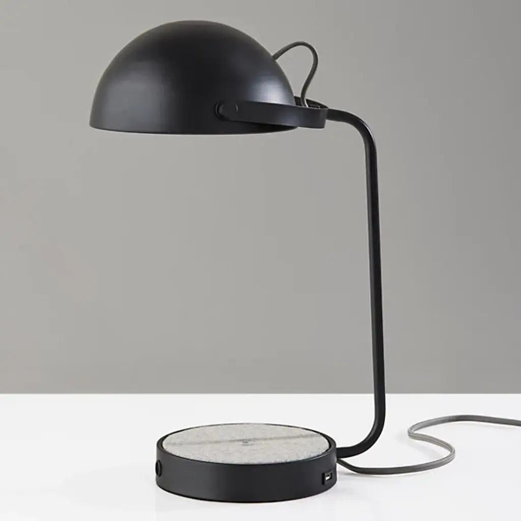 Add a welcome warmth to your work areas with the elegant package of the Brooks Wireless Charging Desk Lamp from Adesso. A stylish mix of mid-century modern elegance with clean contemporary lines, its sleek disc base hides even more appealing functional elements. While a single arm and curved bracket suspend a potent light concealed in a posable dome shade, a charging pad and USB port work to power peripheral devices like phones, pads, and e-readers, even while the light is on.