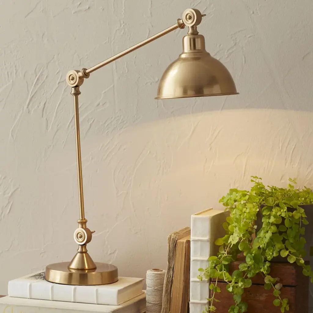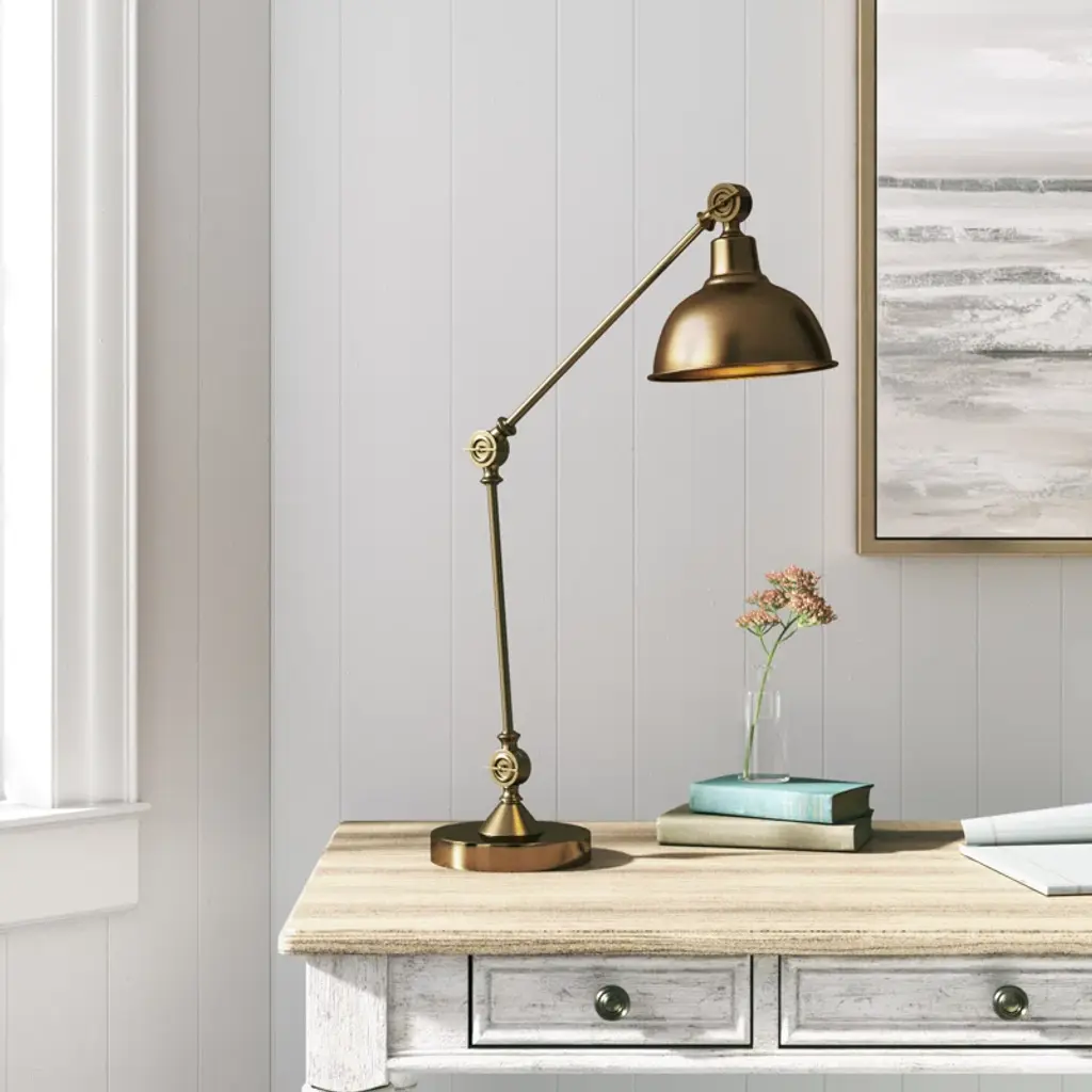 This traditional table lamp is just the right choice for lighting up tight corners or bringing brightness to the reading nook. Its slim body is crafted from metal and topped with a dome shade that directs the light of a 25W maximum bulb (sold separately) over your desk or onto your latest book club book. Plus, you can adjust its arm and shade to get you the light you need. A bronze finish completes the lamp and gives it a classic look.