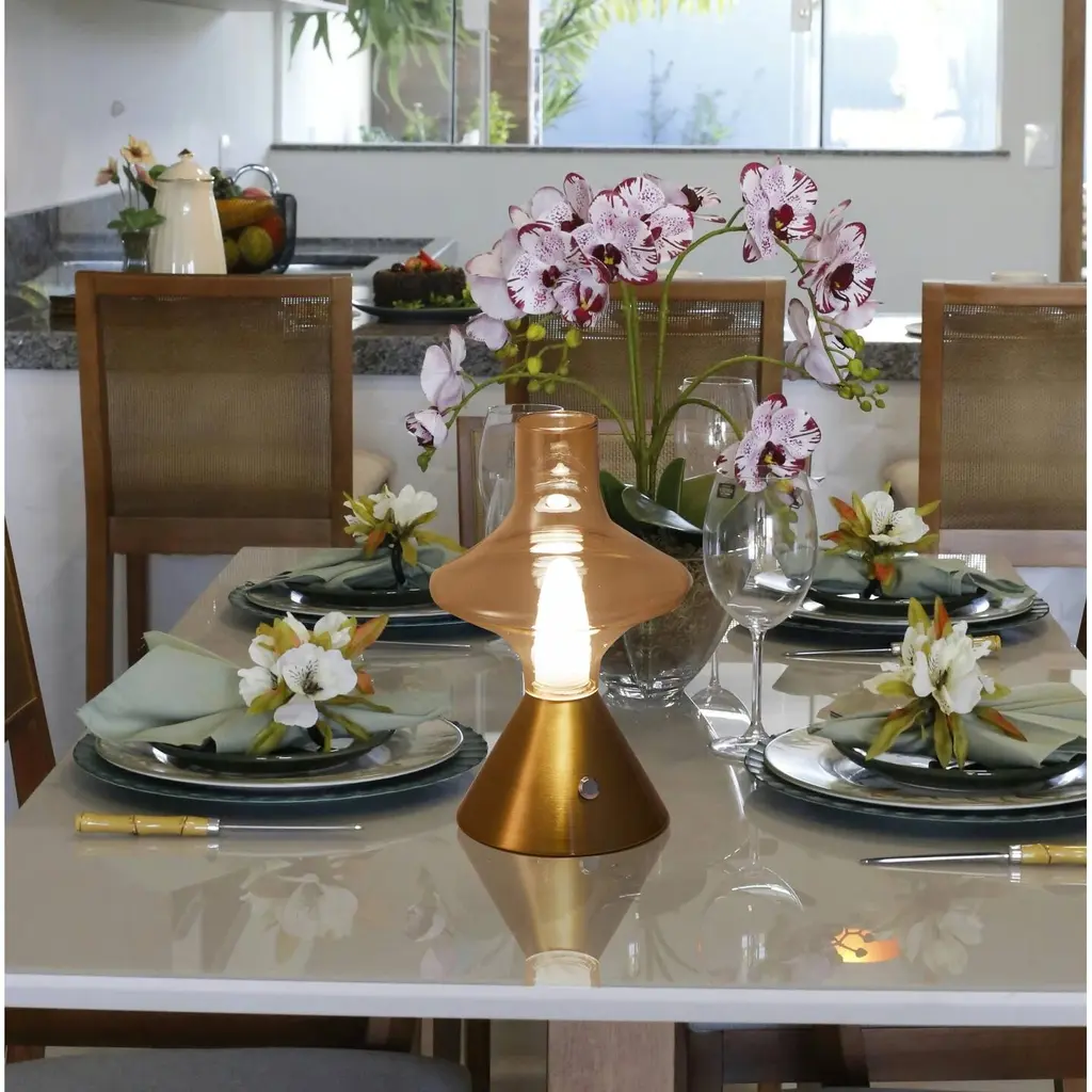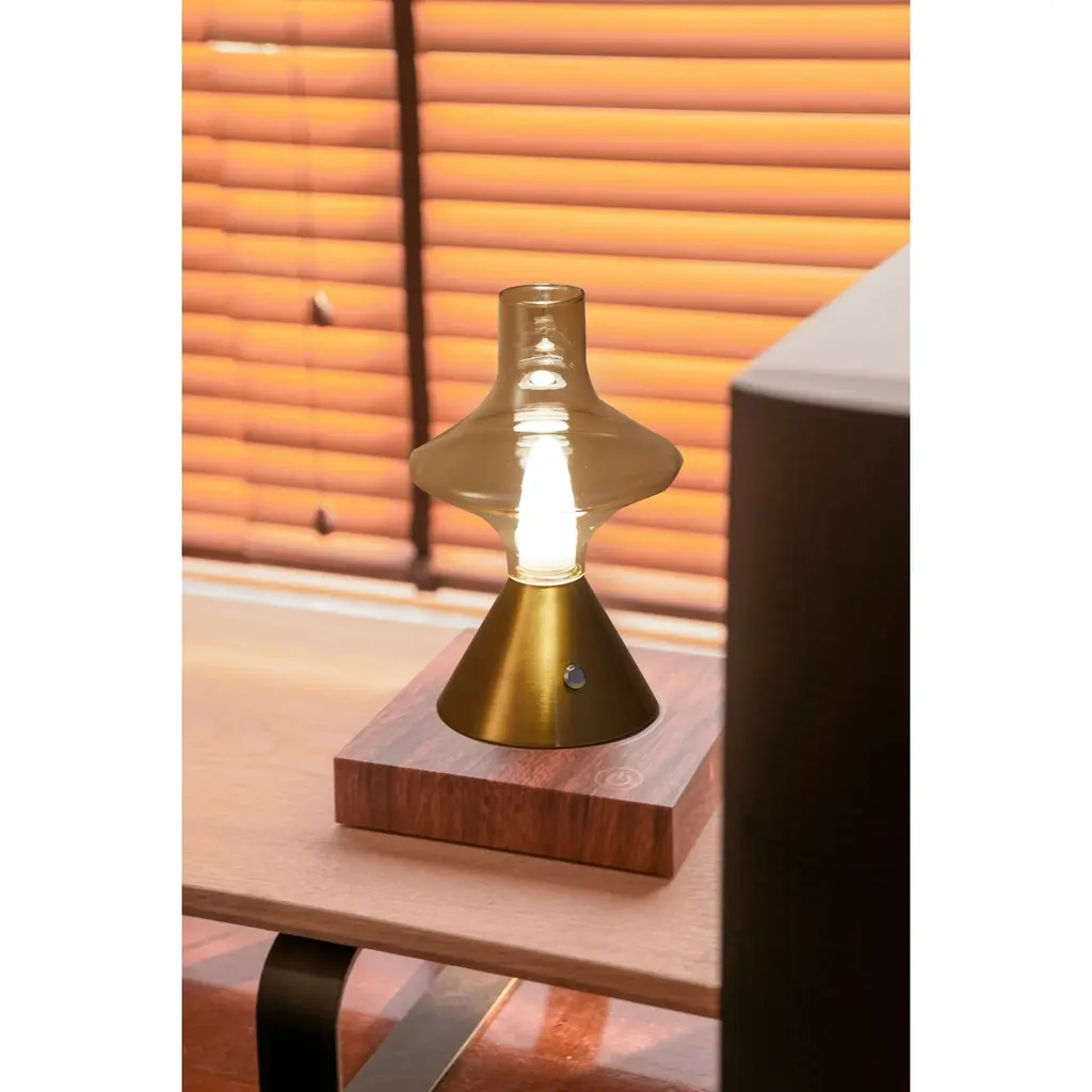 Built-In Battery Mushroom Glass Desk Lamp Rechargeable Integrated Led Bedside Table Lamp - N/a - Gold